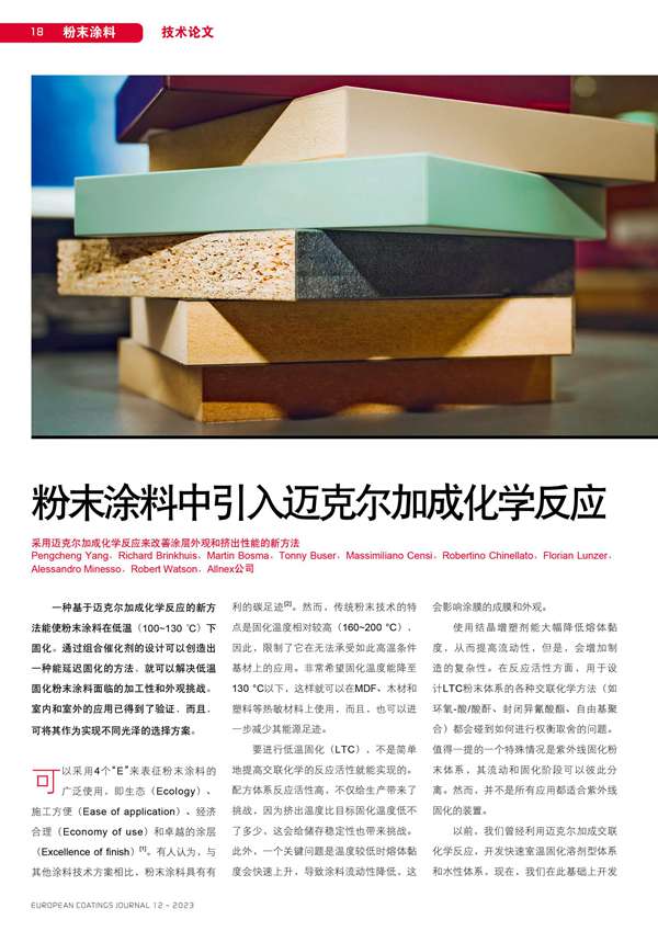 摘要:采用邁克爾加成化學反應來改善涂層外觀和擠出性能的新方法