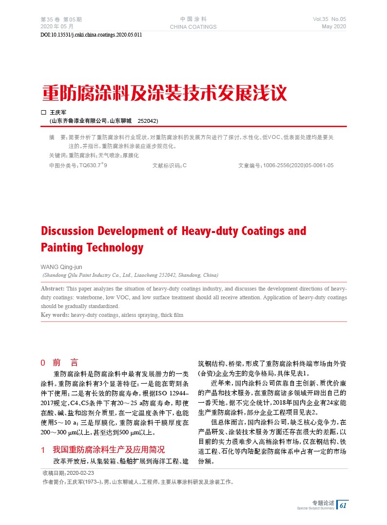 本文系作者@王慶軍 授權(quán)中國涂料網(wǎng)發(fā)表,并經(jīng)中國涂料網(wǎng)編輯,未經(jīng)允許不得轉(zhuǎn)載,如需轉(zhuǎn)載請(qǐng)聯(lián)系chinacoatingnet@vip.163.com