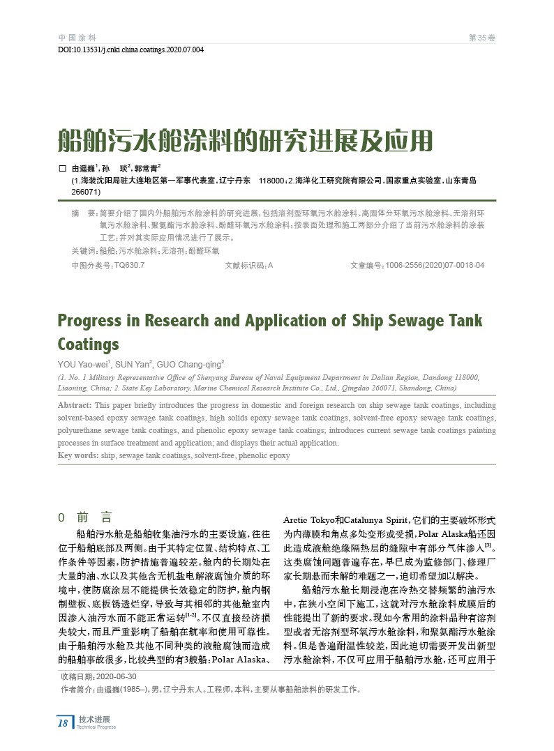 本文系作者@由遙巍,孫 琰,郭常青 授權中國涂料網發(fā)表,并經中國涂料網編輯,未經允許不得轉載,如需轉載請聯(lián)系chinacoatingnet@vip.163.com