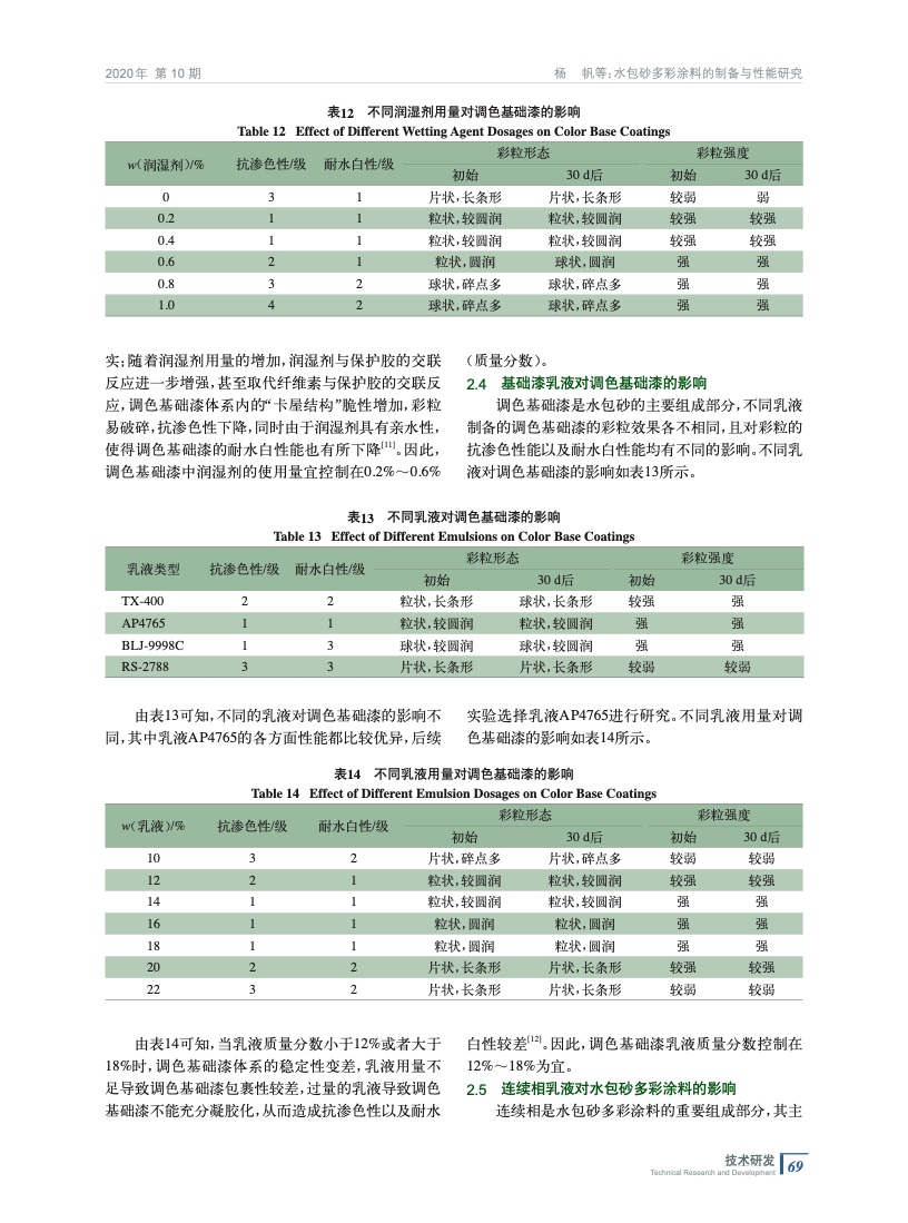 水包砂多彩涂料的制備與性能研究