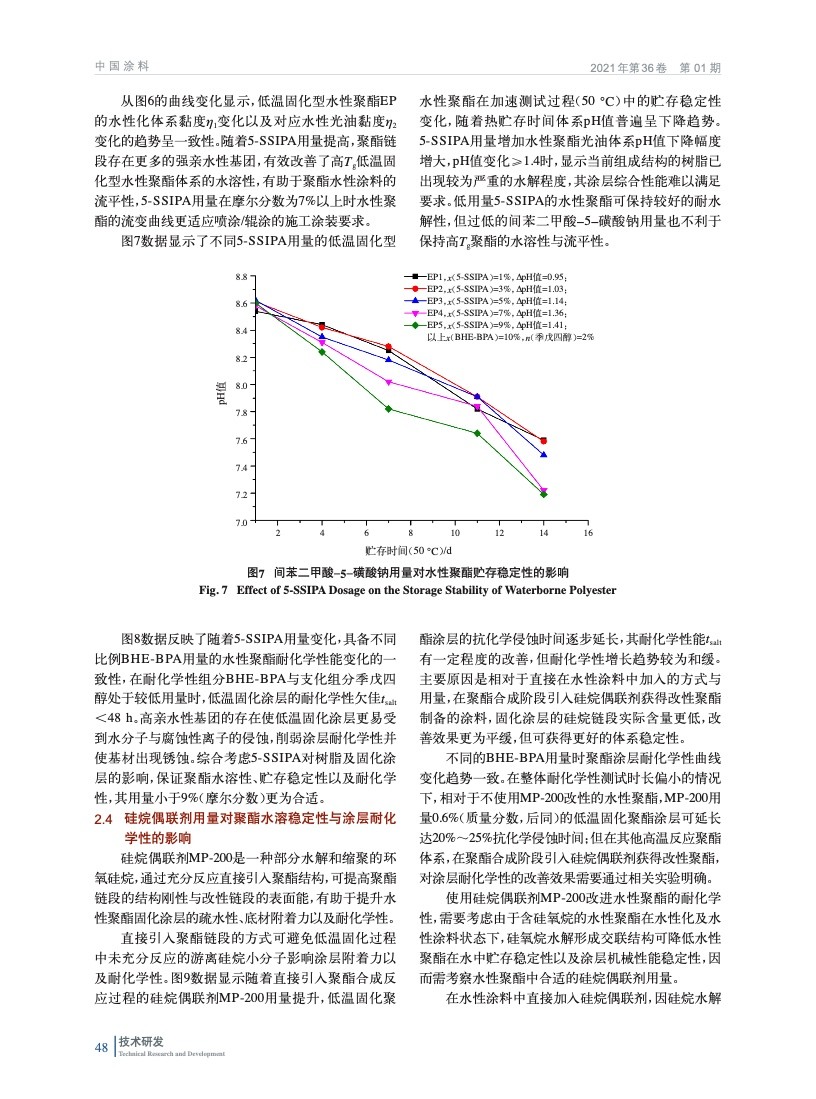 摘要:基于功能性組分羥乙基化雙酚A,間苯二甲酸-5-磺酸鈉以及多元醇/酸合成聚酯共聚物,并以硅烷偶聯劑改性獲得適合低溫固化型水性烤漆的水性聚酯;研究了羥乙基化雙酚A,間苯二甲酸-5-磺酸鈉,支化組分以及硅烷偶聯劑對性能的影響;同時考察了涂料助劑對低溫固化涂層性能的合適用量。