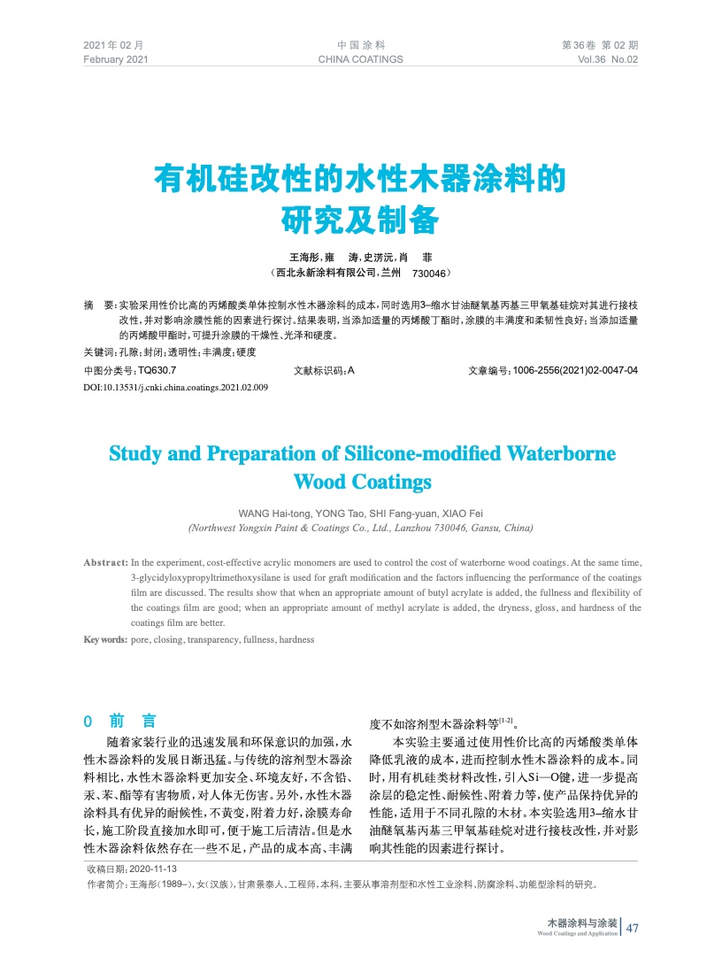 本文系作者@王海彤,雍 濤,史淓沅,肖 菲 授權(quán)中國涂料網(wǎng)發(fā)表,并經(jīng)中國涂料網(wǎng)編輯,未經(jīng)允許不得轉(zhuǎn)載,如需轉(zhuǎn)載請聯(lián)系chinacoatingnet@vip.163.com