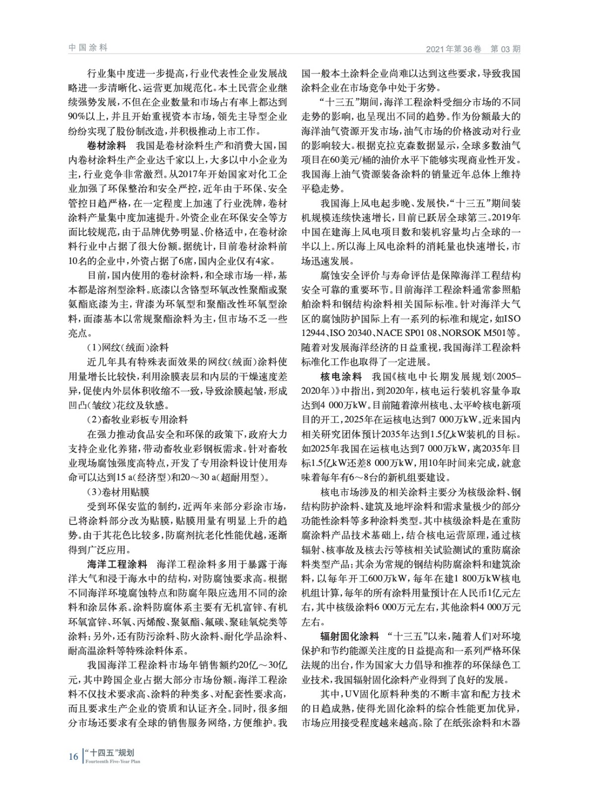 摘要:編者按:2021年3月24日,《中國涂料行業(yè)“十四五”規(guī)劃》于“2021中國國際涂料大會”期間正式發(fā)布,為中國涂料行業(yè)未來5年的發(fā)展擘畫了目標(biāo)和方向。為了使涂料行業(yè)及相關(guān)領(lǐng)域及時深入了解《中國涂料行業(yè)“十四五”規(guī)劃》的精髓和全貌,本刊將從本期開始全文刊登,并分別解讀重點(diǎn)領(lǐng)域的“十四五”發(fā)展規(guī)劃,以饗讀者。