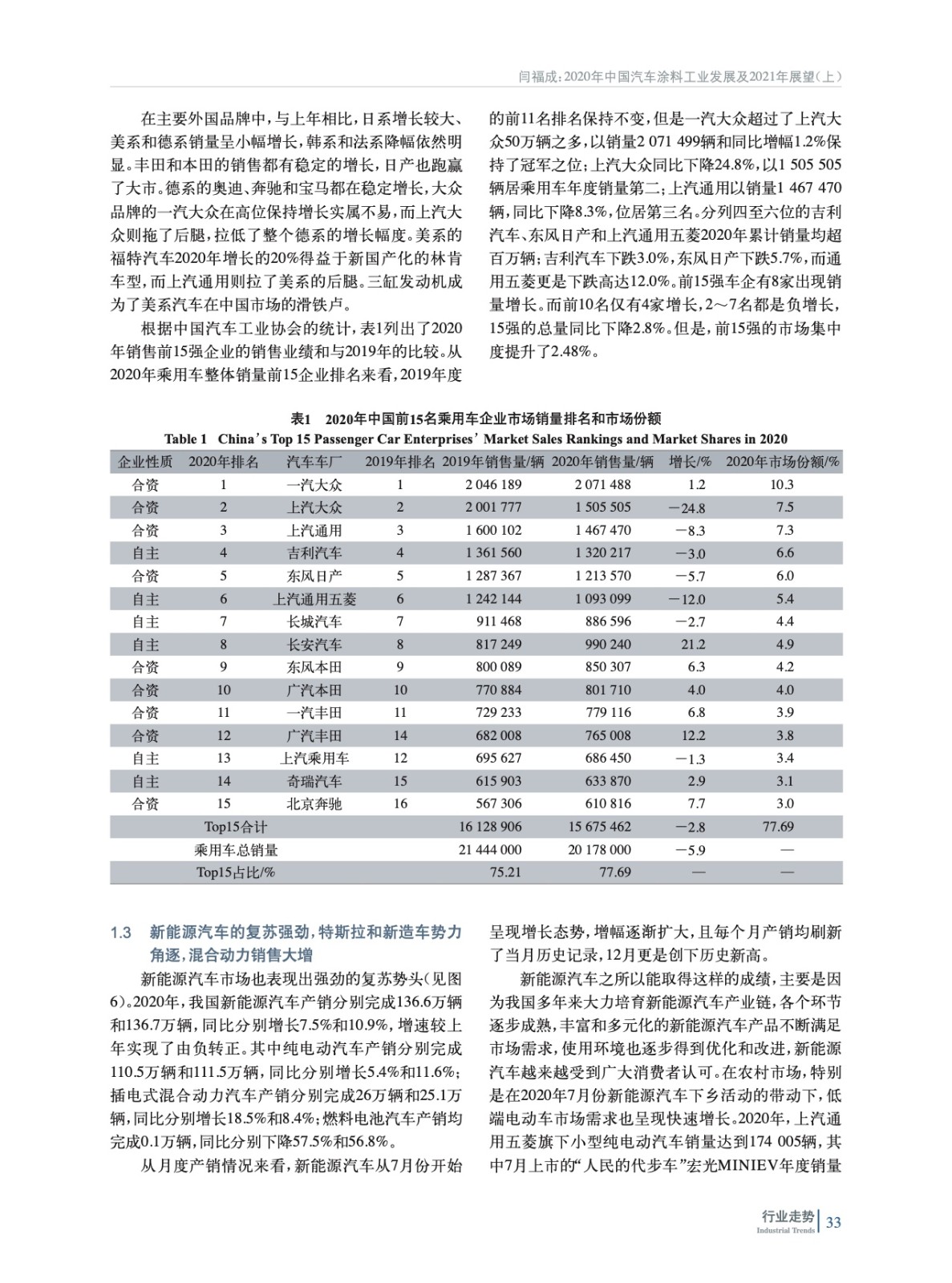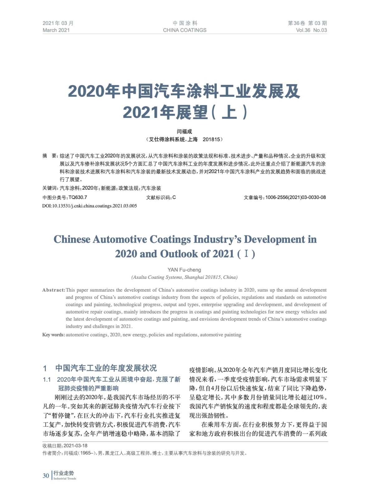2020年中國汽車涂料工業(yè)發(fā)展及2021年展望(上)