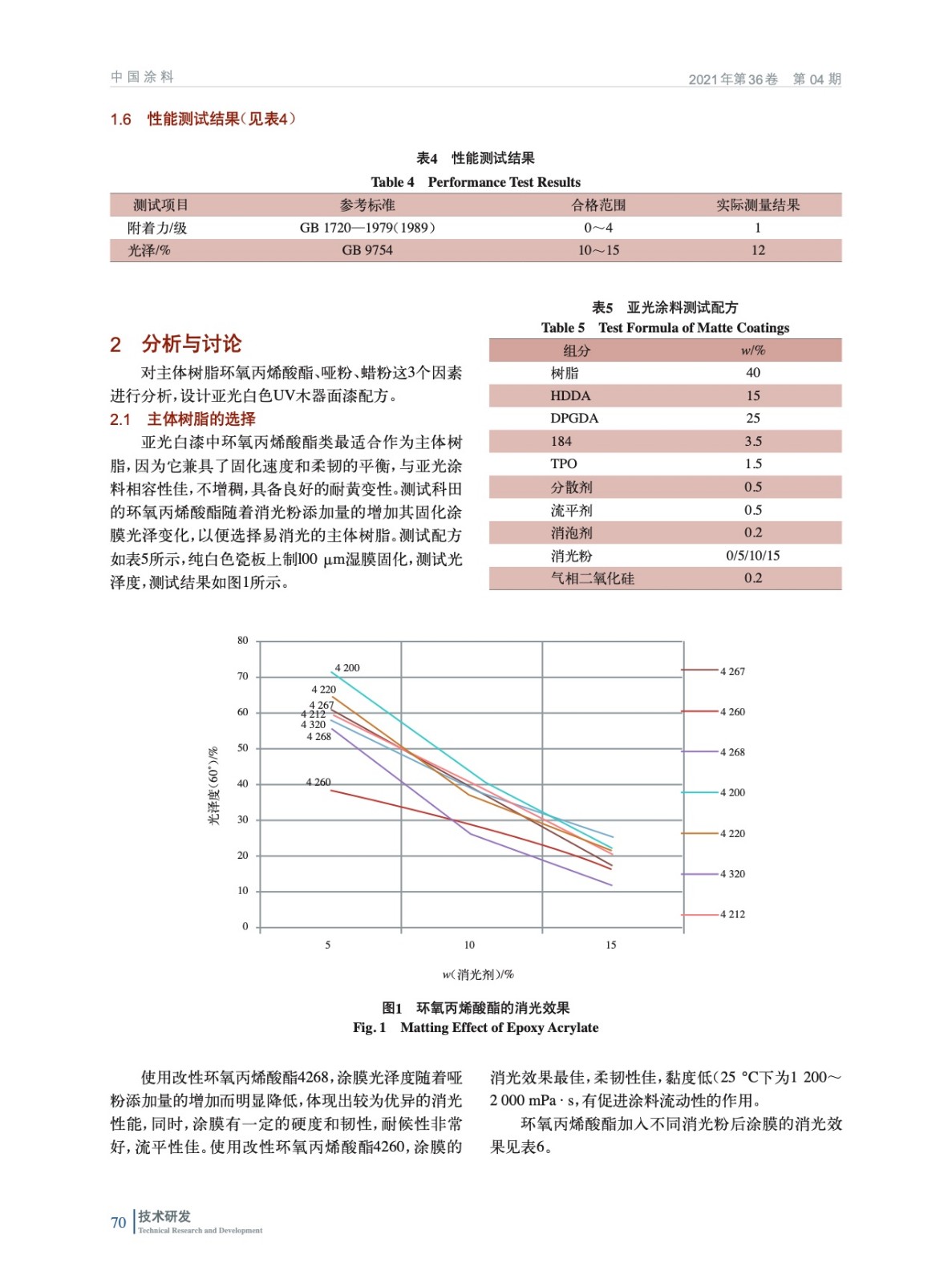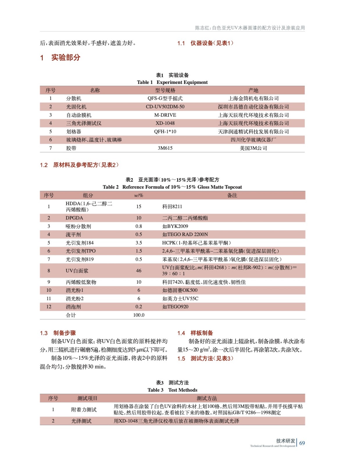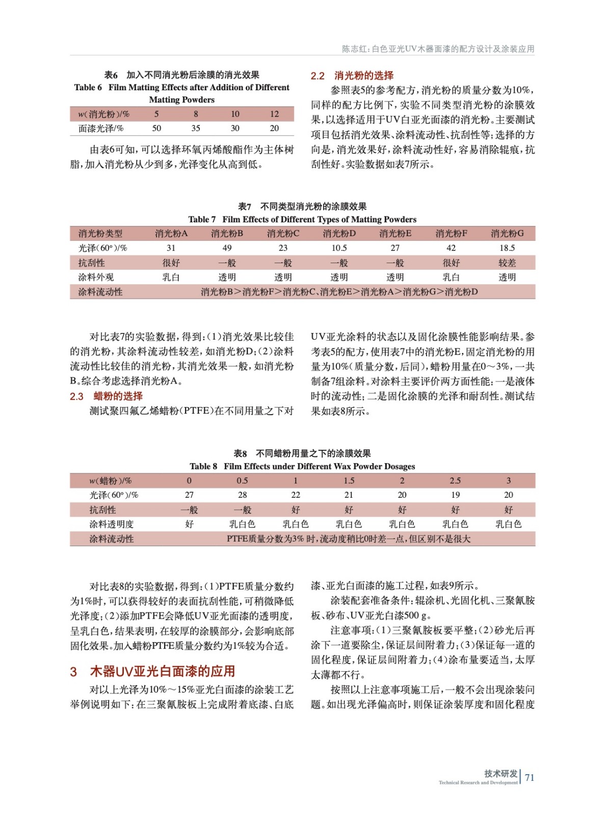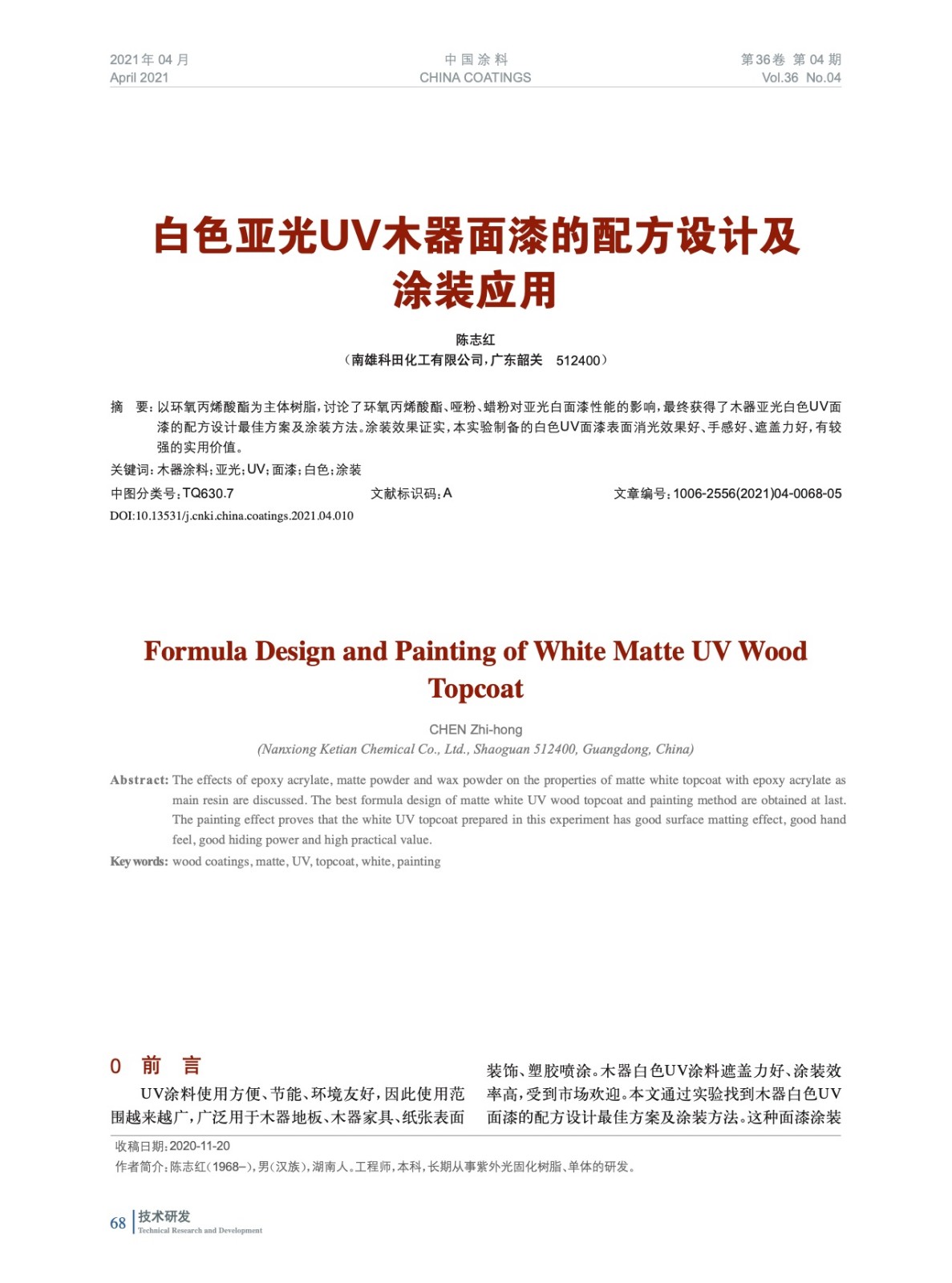 木器亞光白色UV面漆的配方設計及涂裝應用