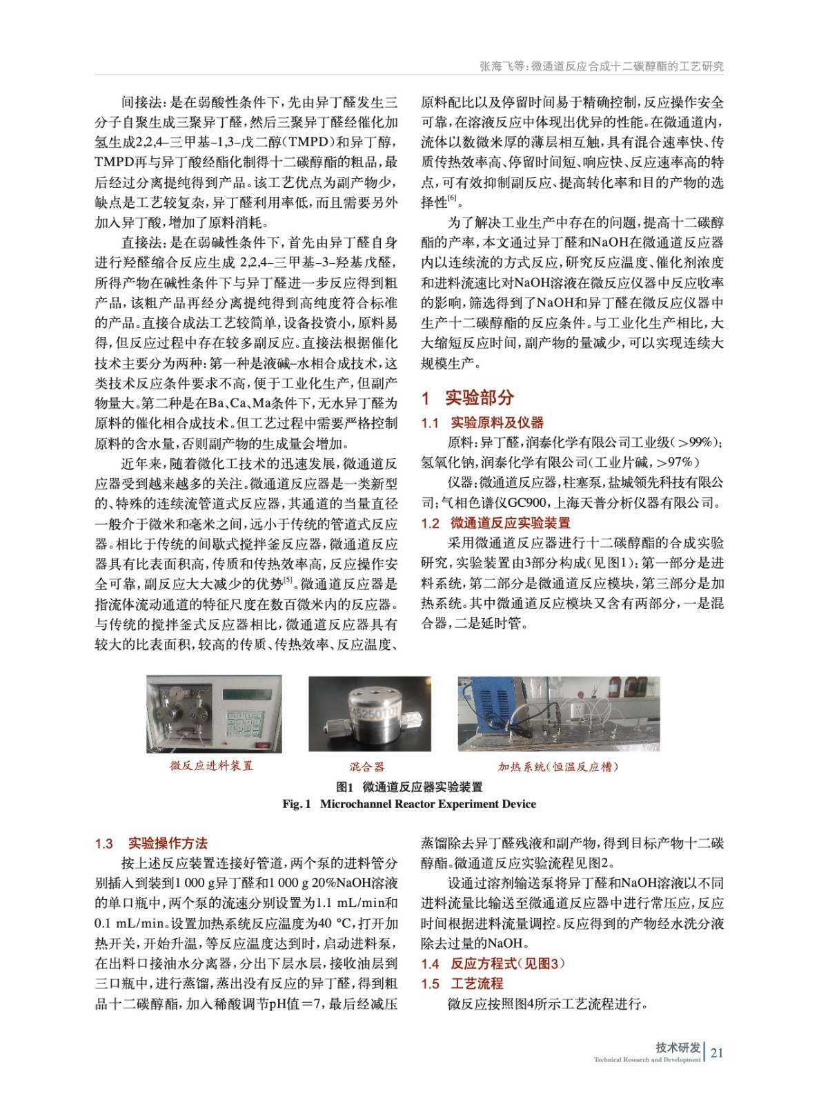 摘要:采用異丁醛和堿通過微反應儀器合成十二碳醇酯。實驗選用異丁醛和NaOH,系統地研究了堿的濃度、含量、溫度對微反應的影響。研究表明:當異丁醛和NaOH流速比為1.1︰0.1(流速單位:mL/min),反應溫度為50 ℃,NaOH濃度為30%,目標產物收率達86.5%。