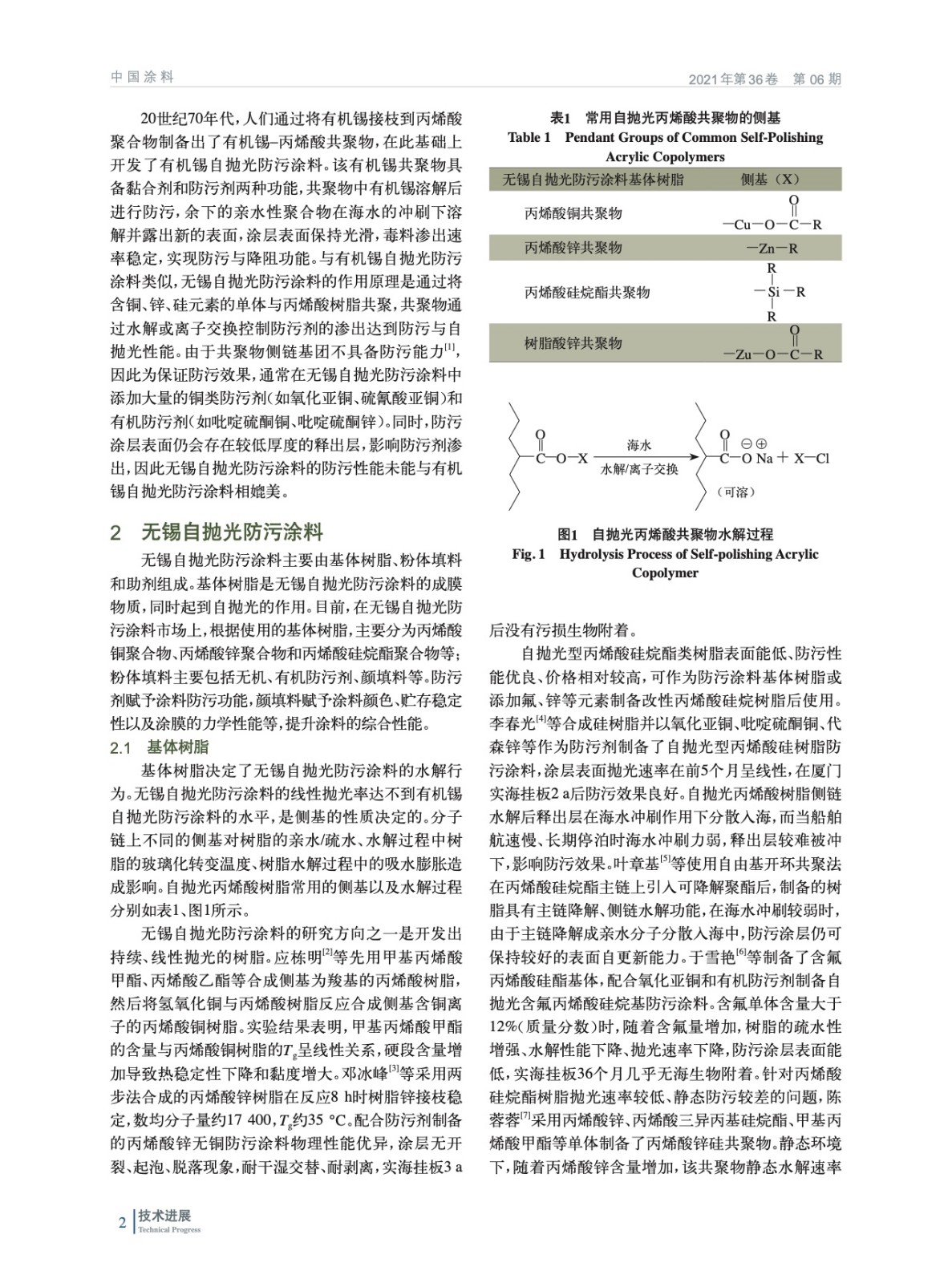 涂裝防污涂料是涉海裝備規避海洋生物污損的有效手段。目前,防污涂料市場主流產品為無錫自拋光防污涂料(TFSPC),就無錫自拋光防污涂料的原理及其主要組分的研究應用現狀進行了論述。