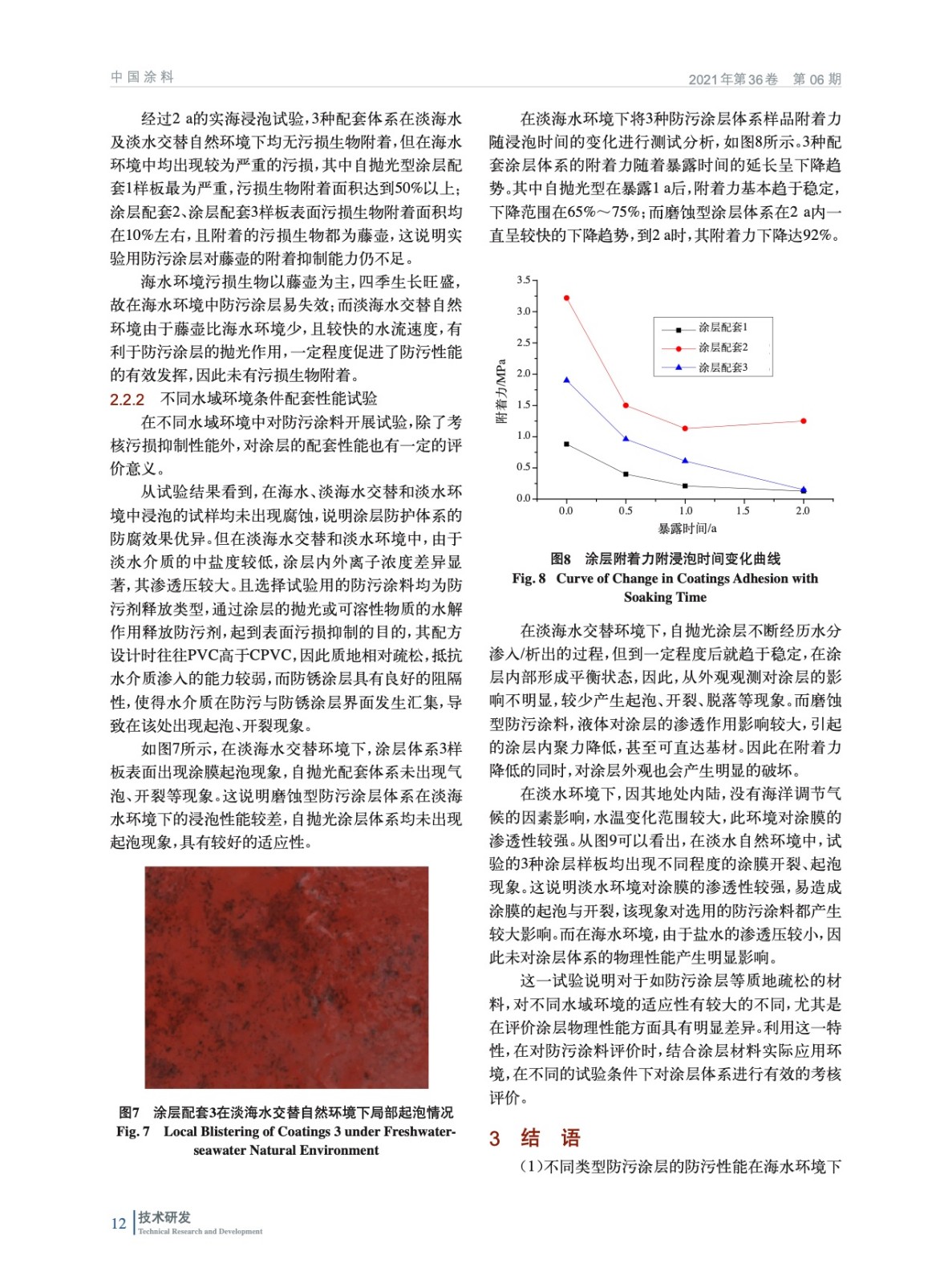 防污涂料在不同水域壞境下防污及其配套性能研究
