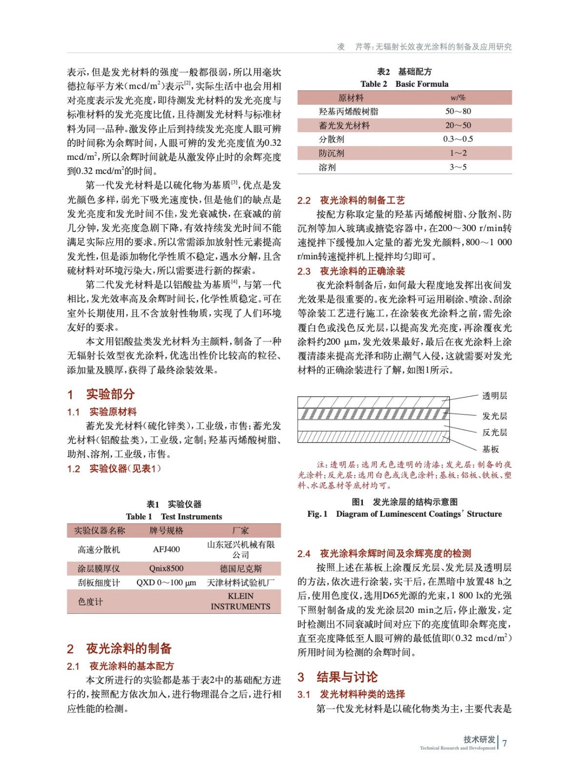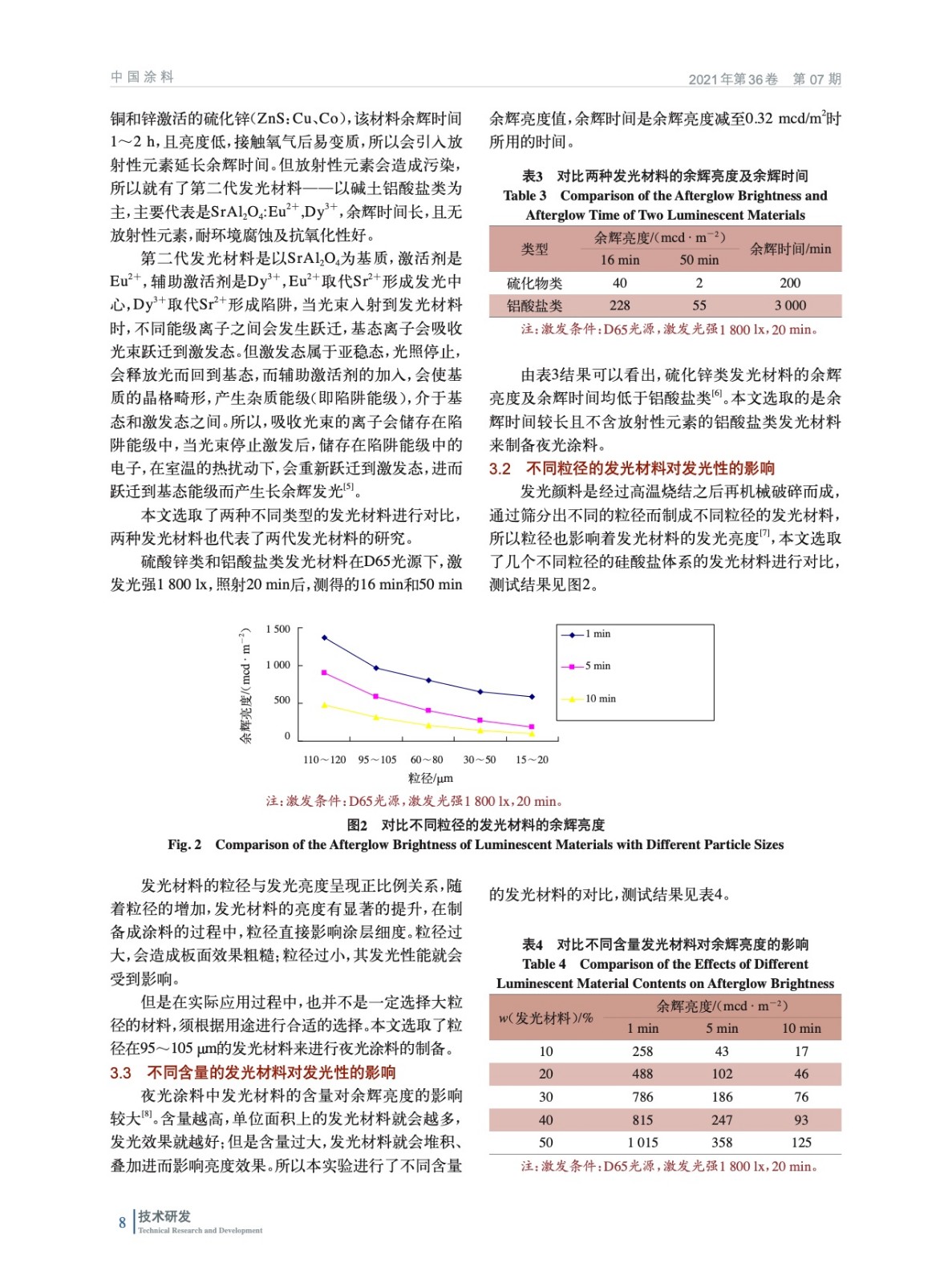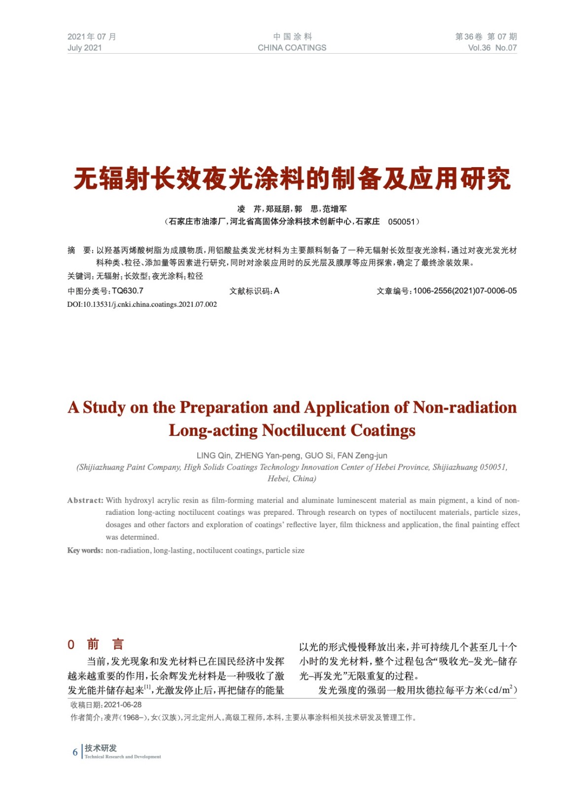 以羥基丙烯酸樹脂為成膜物質,用鋁酸鹽類發光材料為主要顏料制備了一種無輻射長效型夜光涂料,通過對夜光發光材料種類、粒徑、添加量等因素進行研究,同時對涂裝應用時的反光層及膜厚等應用探索,確定了最終涂裝效果。