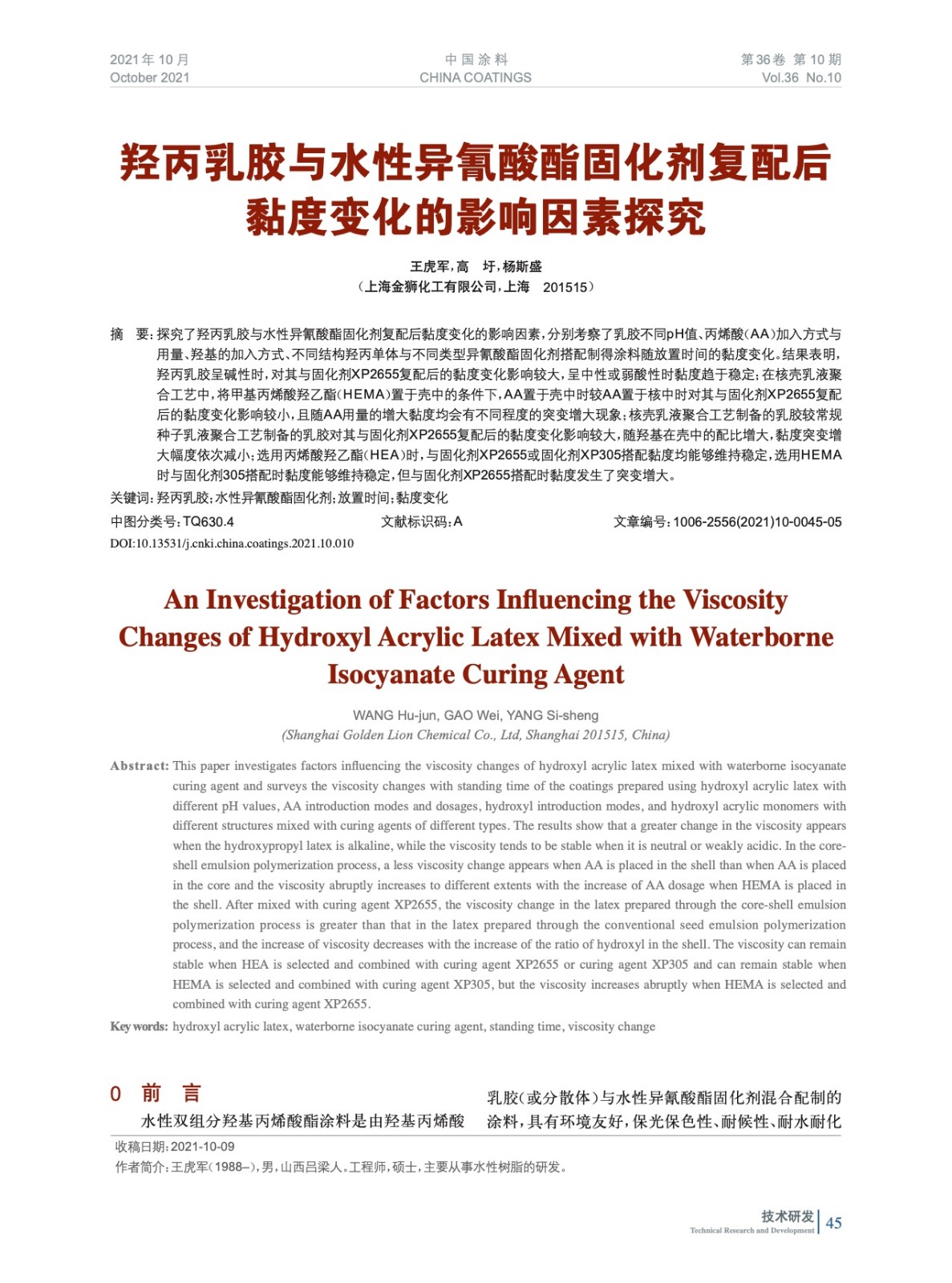 本文系作者@王虎軍,高 圩,楊斯盛 授權中國涂料網發表,并經中國涂料網編輯,未經允許不得轉載,如需轉載請聯系chinacoatingnet@vip.163.com
