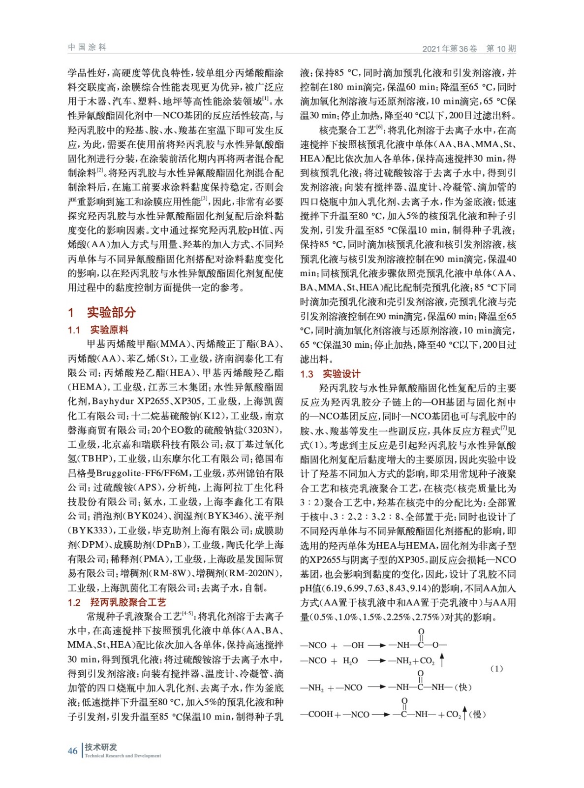 羥丙乳膠與水性異氰酸酯固化劑復配后黏度變化的影響因素探究