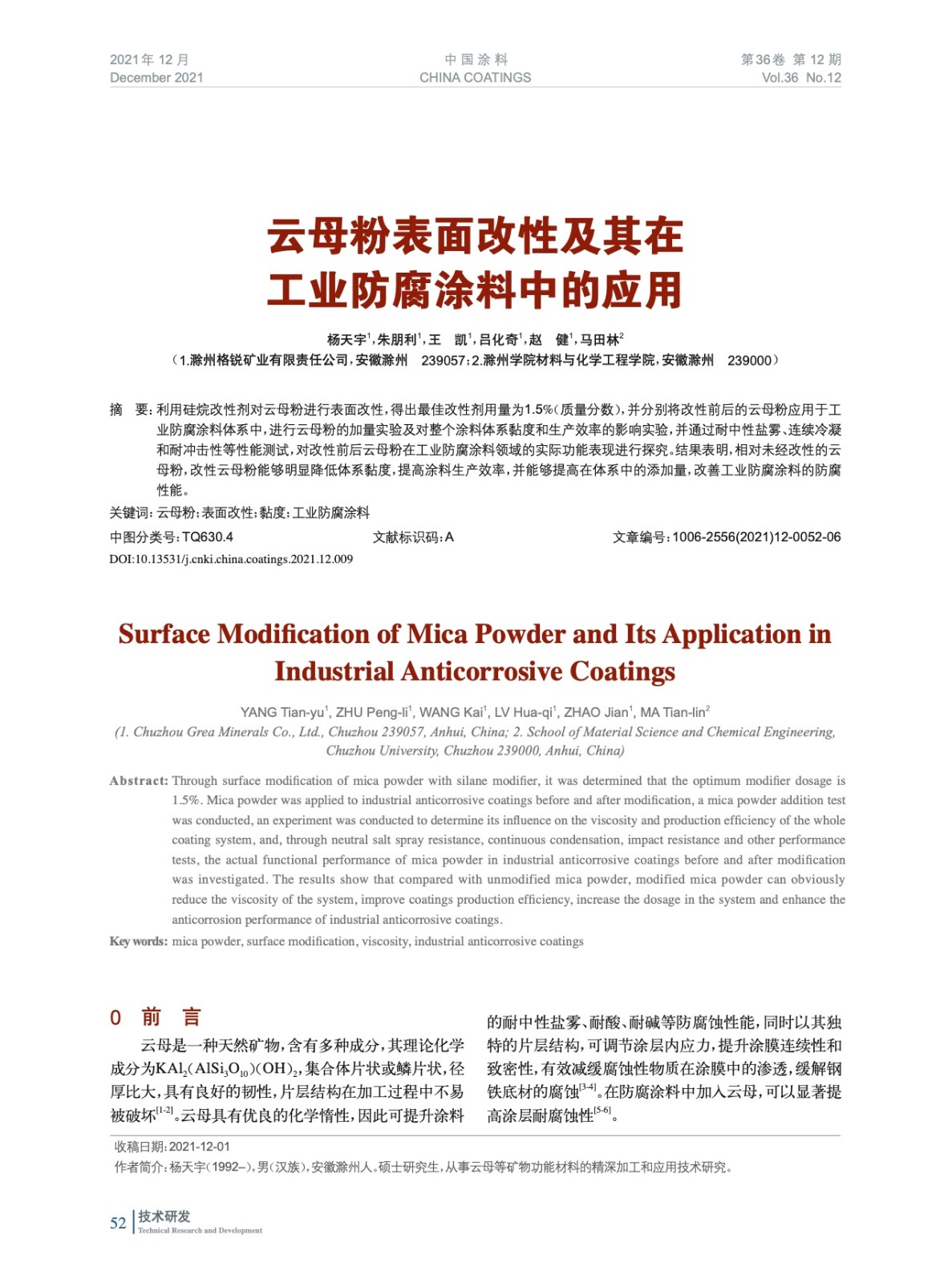 本文系作者@楊天宇,朱朋利,王 凱,呂化奇,趙 健,馬田林 授權中國涂料網發表,并經中國涂料網編輯,未經允許不得轉載,如需轉載請聯系chinacoatingnet@vip.163.com