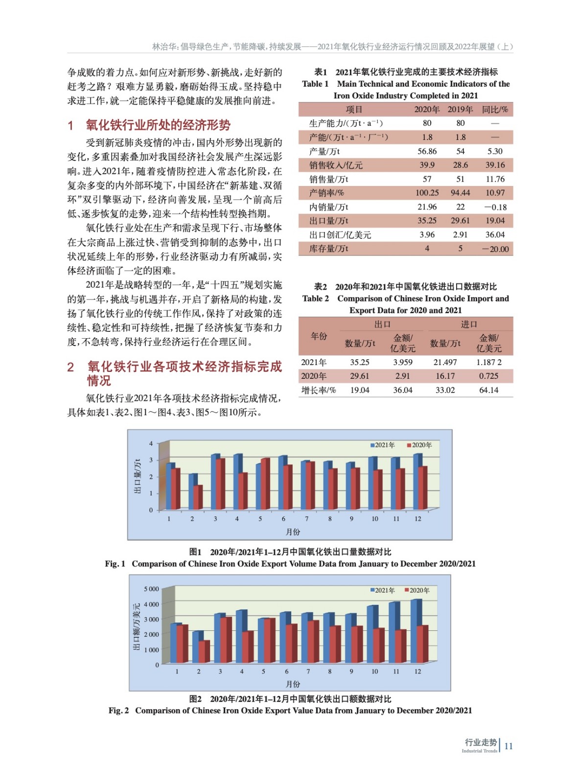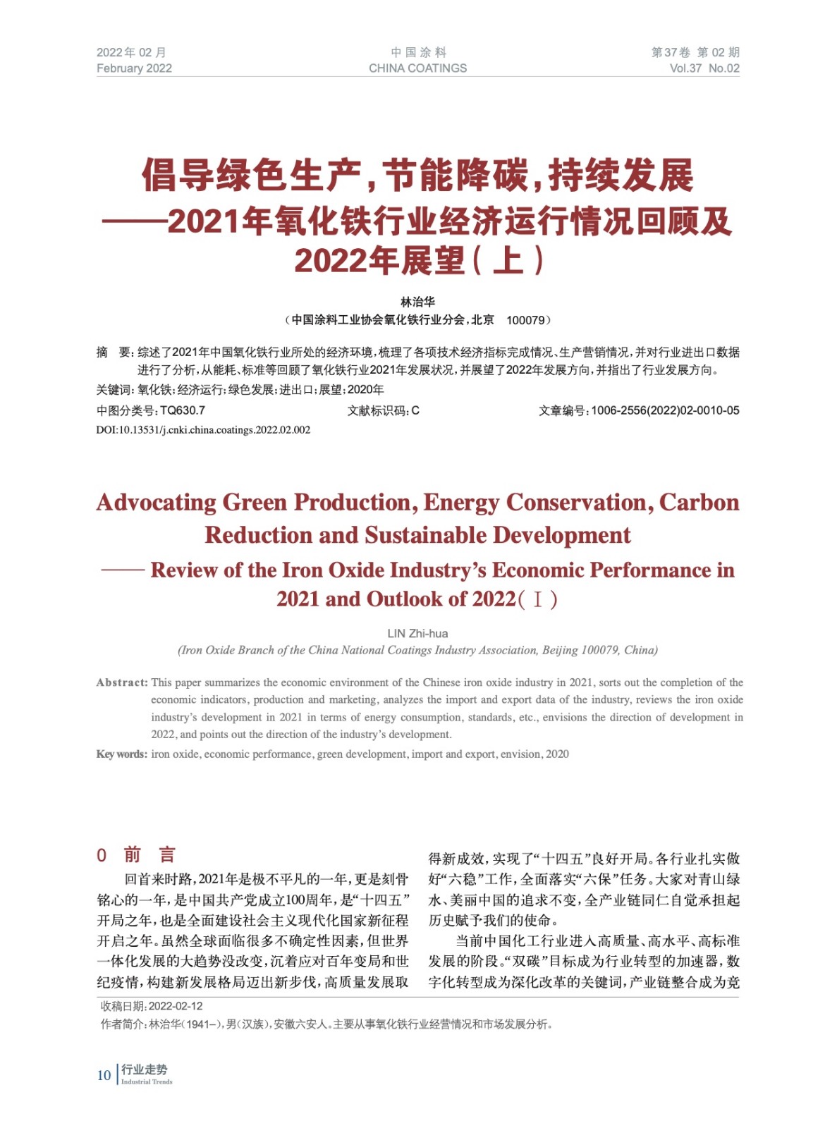 倡導綠色生產,節能降碳,持續發展——2021年氧化鐵行業經濟運行情況回顧及2022年展望(上)