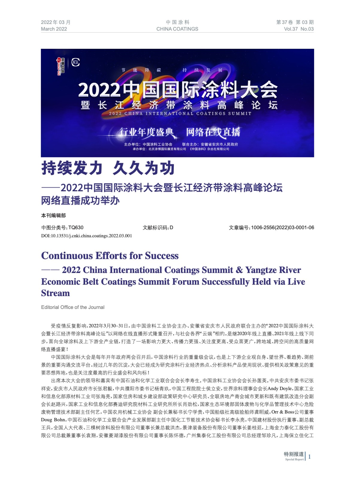 持續發力 久久為功——2022中國國際涂料大會暨長江經濟帶涂料高峰論壇網絡直播成功舉辦
