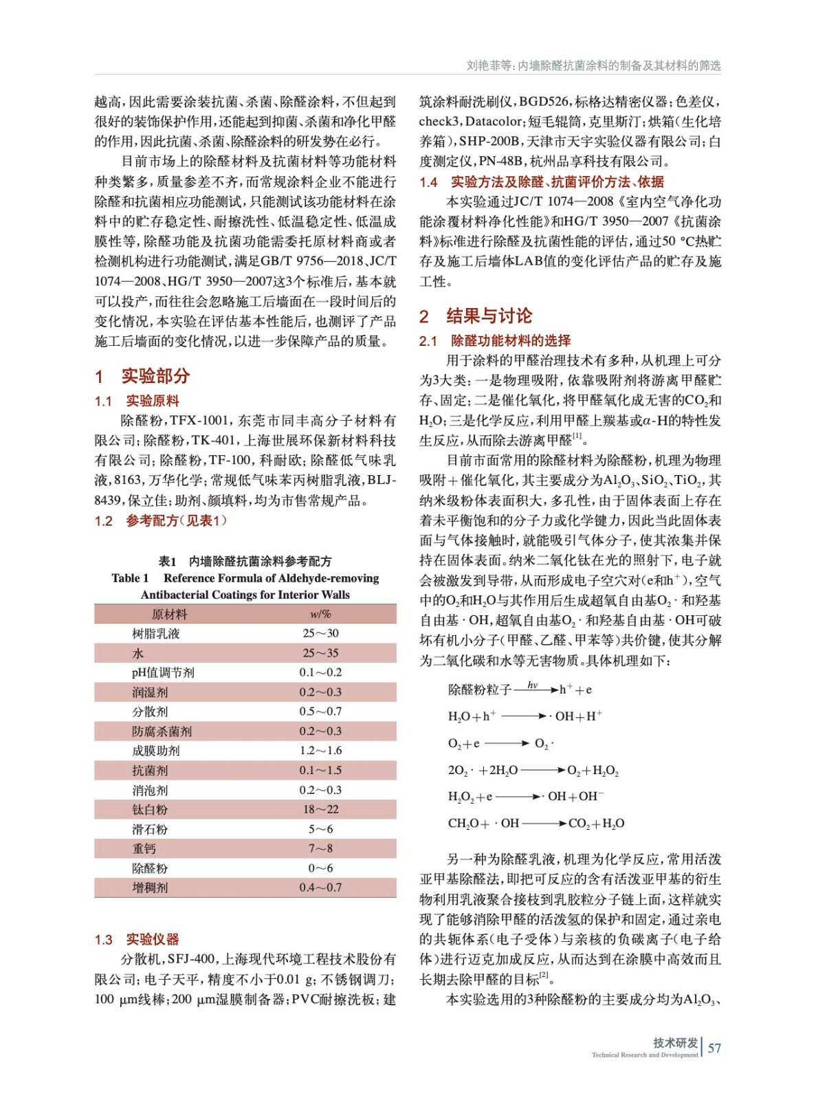 內墻除醛抗菌涂料的制備及其材料的篩選