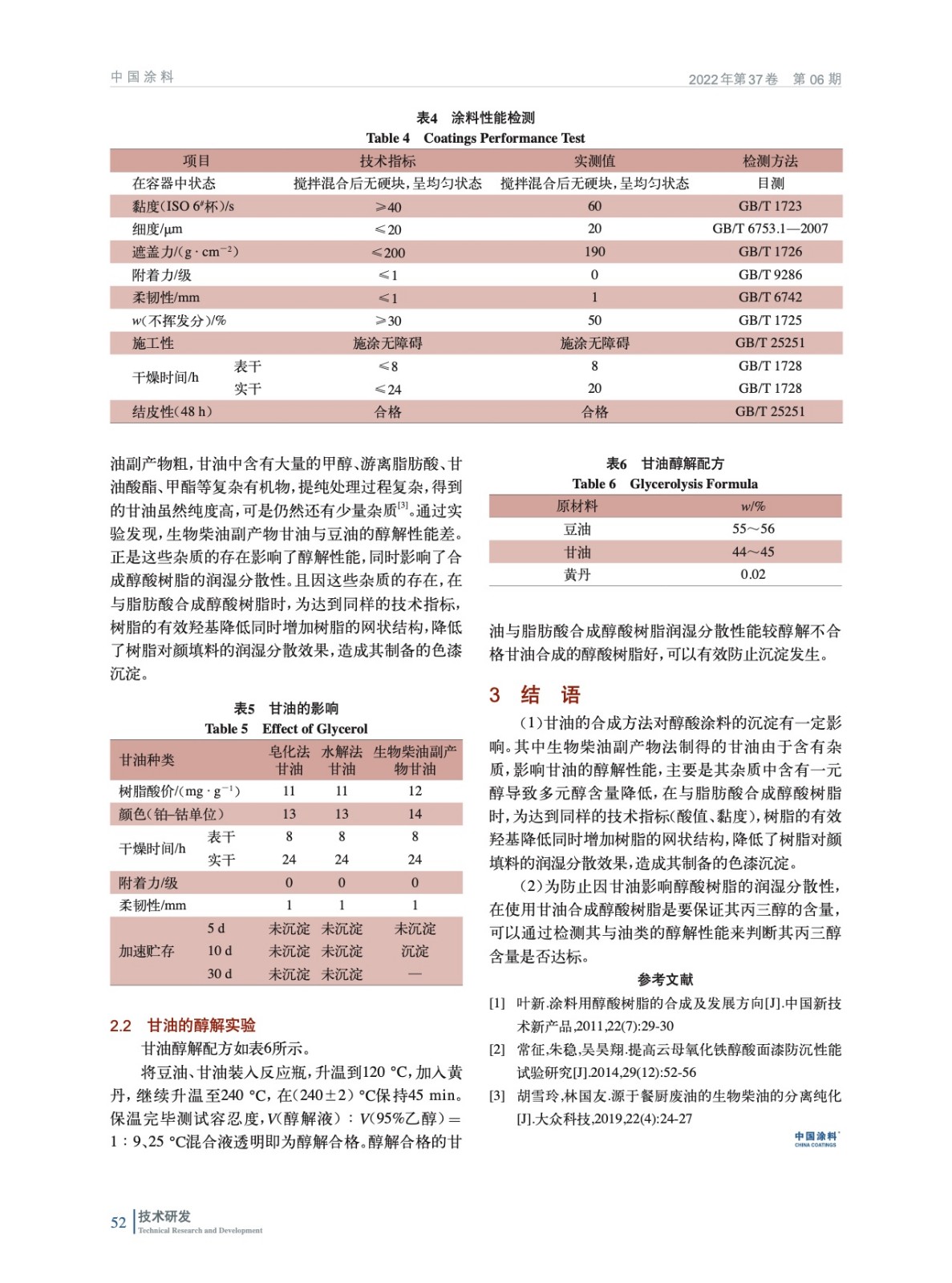 針對醇酸樹脂涂料的沉淀現象進行了分析,并對甘油種類對醇酸樹脂及涂料的影響、分散劑及防沉劑對醇酸樹脂涂料沉淀的影響進行了考察。對實驗結果進行了討論,并對醇酸涂料的防沉淀問題提出了建議。