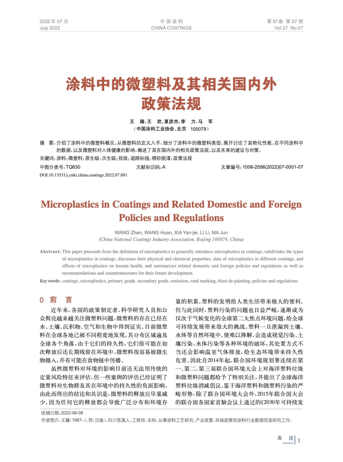 介紹了涂料中的微塑料概況,從微塑料的定義入手,細分了涂料中的微塑料類型,展開討論了其物化性能、在不同涂料中的數據,以及微塑料對人體健康的影響,概述了其在國內外的相關政策法規,以及未來的建議與對策。
