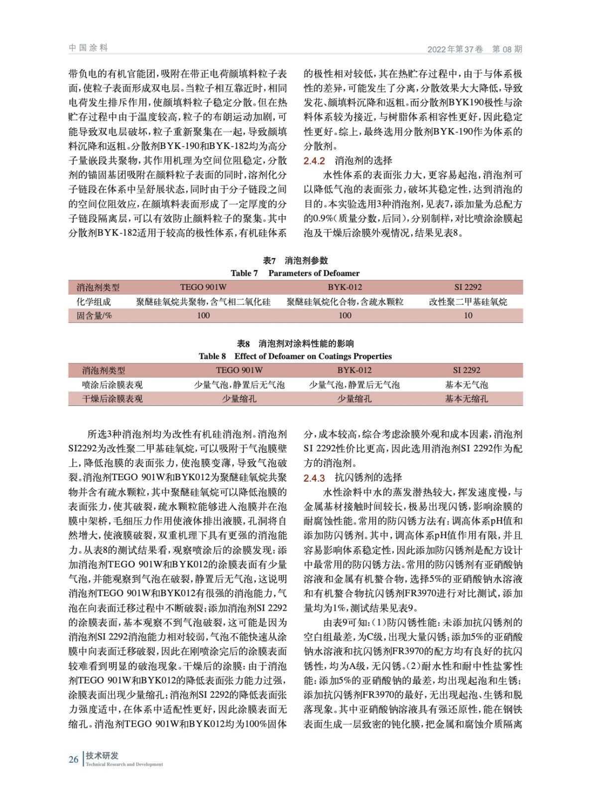 介紹了一種水性有機硅耐高溫涂料的制備方法,從樹脂、助劑、顏填料及固化條件的選擇等方面對配方進行了優化,開發出水性有機硅耐高溫涂料,可以承受600 ℃高溫,具有優異的機械性能和防腐性能。