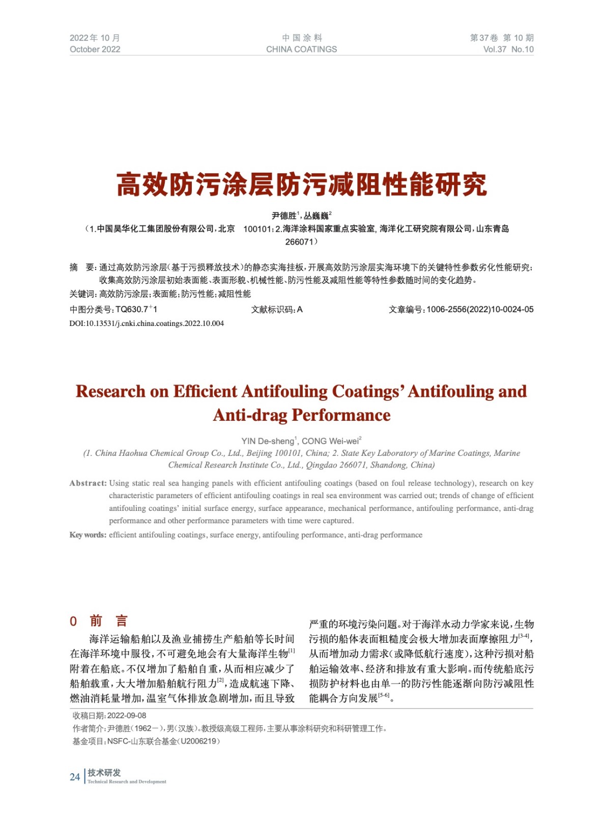 本文系作者@尹德勝,叢巍巍 授權中國涂料網發表,并經中國涂料網編輯,未經允許不得轉載,如需轉載請聯系chinacoatingnet@vip.163.com