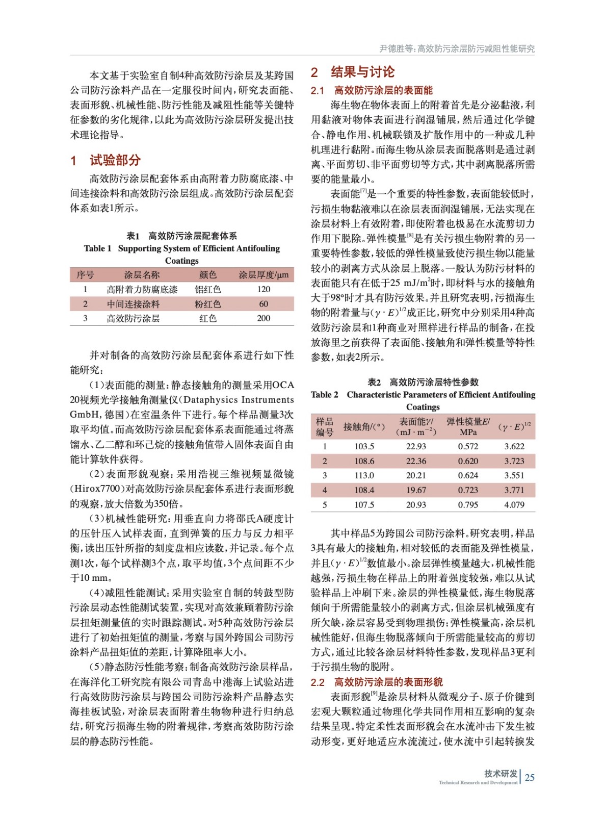 通過高效防污涂層(基于污損釋放技術)的靜態實海掛板,開展高效防污涂層實海環境下的關鍵特性參數劣化性能研究;收集高效防污涂層初始表面能、表面形貌、機械性能、防污性能及減阻性能等特性參數隨時間的變化趨勢。