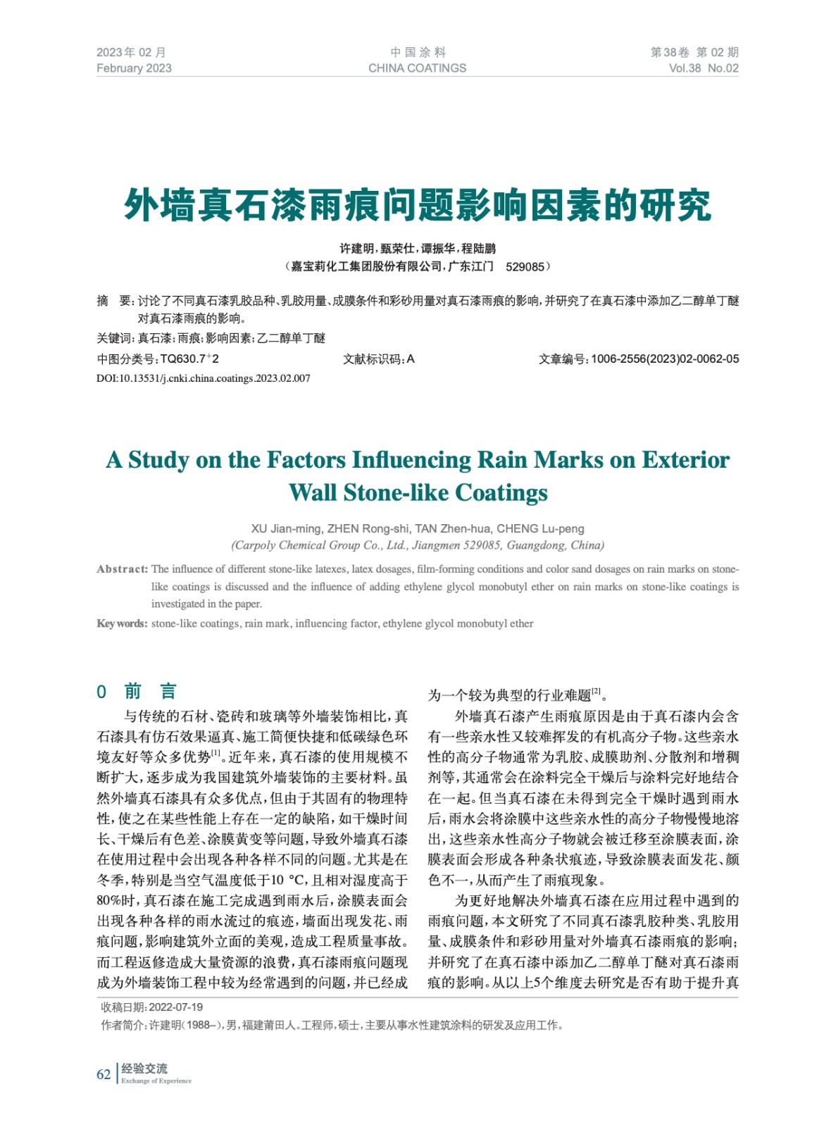 本文系作者@許建明,甄榮仕,譚振華,程陸鵬 授權中國涂料網發表,并經中國涂料網編輯,未經允許不得轉載,如需轉載請聯系chinacoatingnet@vip.163.com