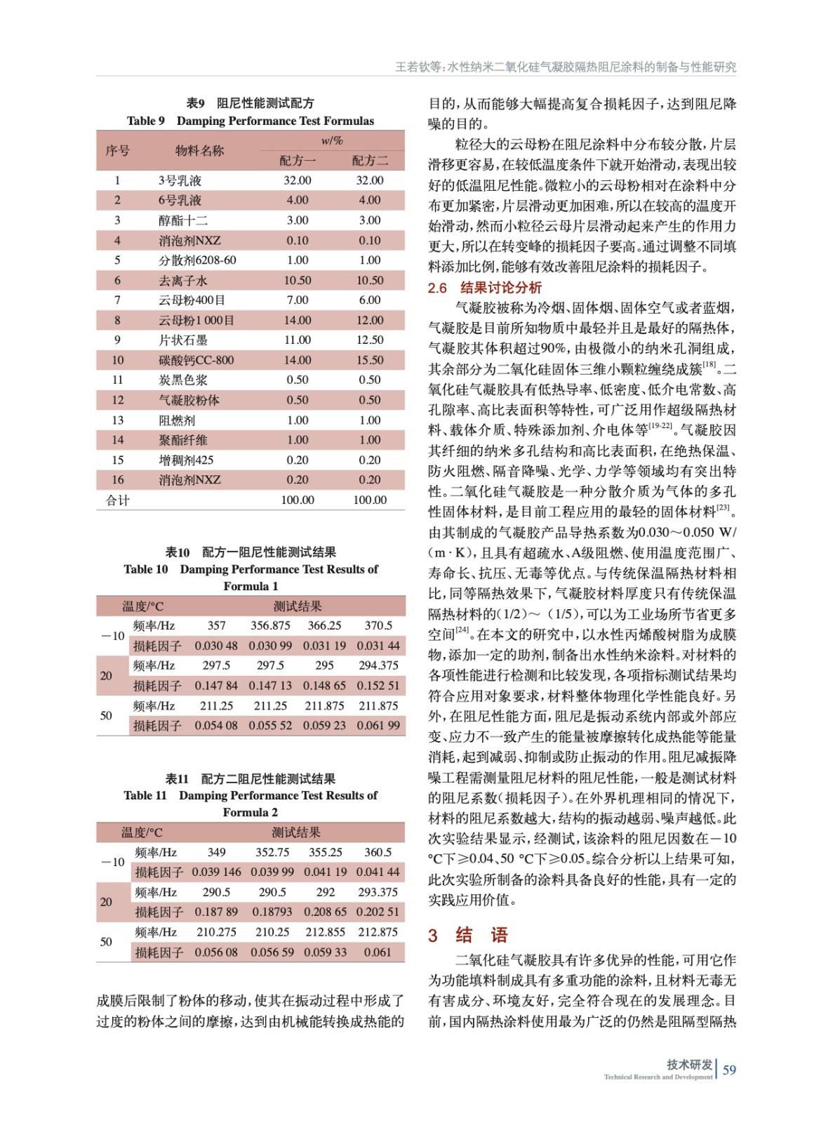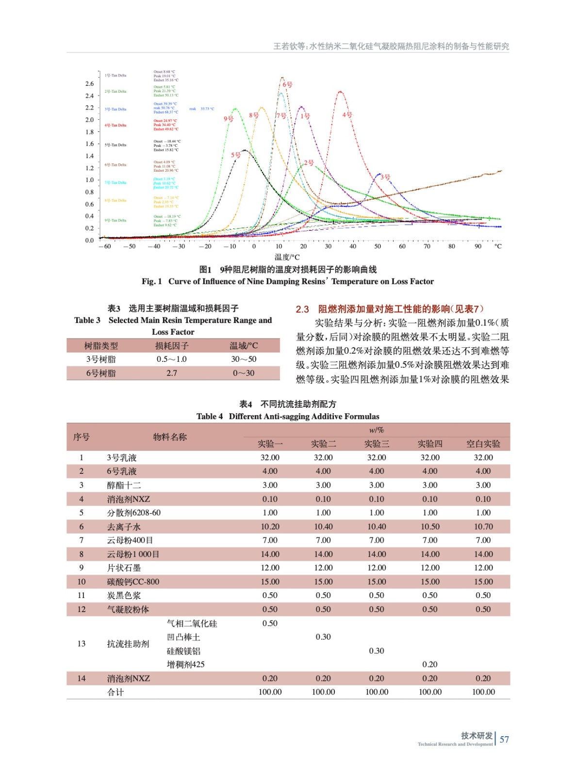 水性納米二氧化硅氣凝膠隔熱阻尼涂料的制備與性能研究