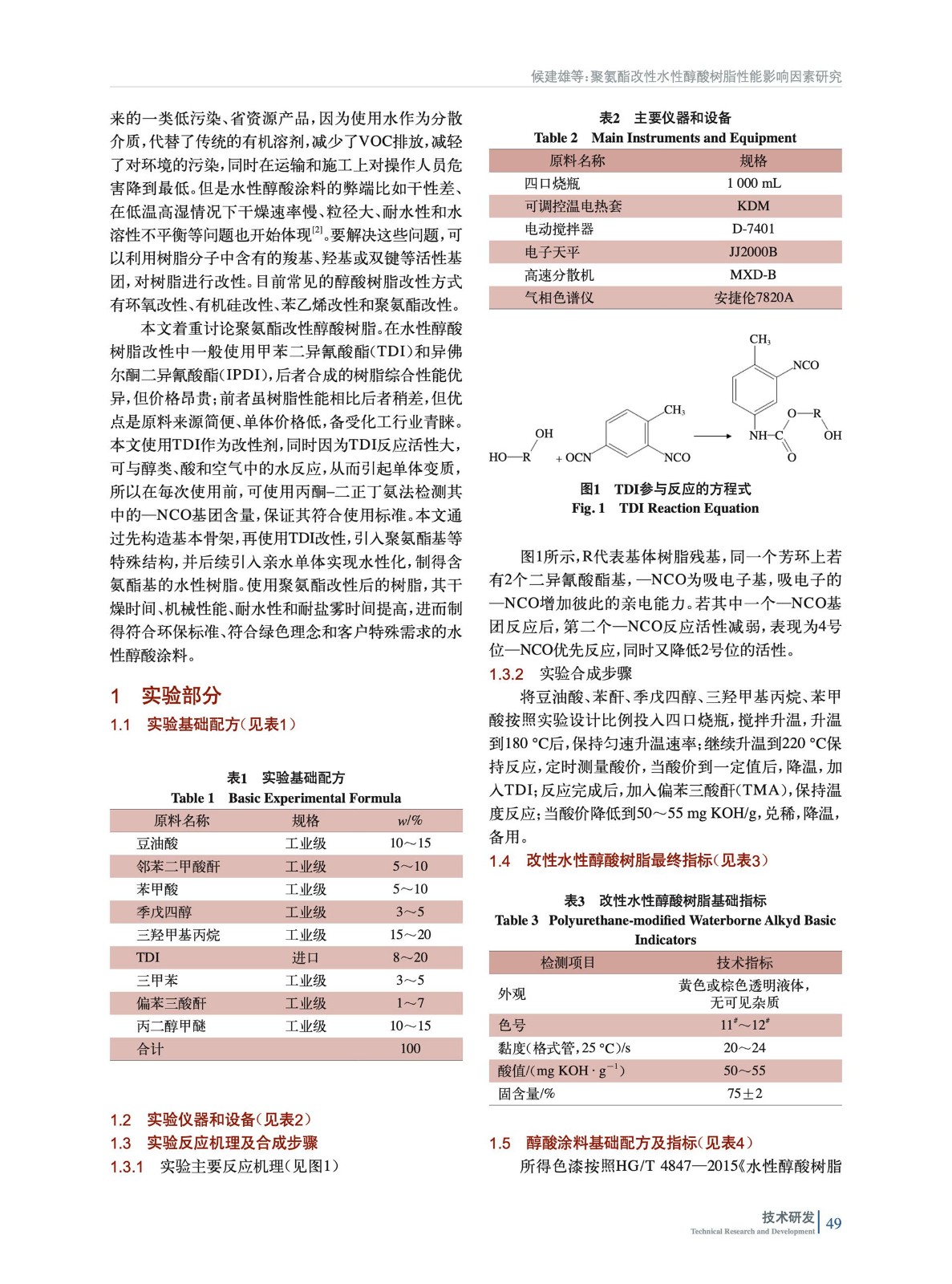 聚氨酯改性水性醇酸樹脂性能影響因素研究