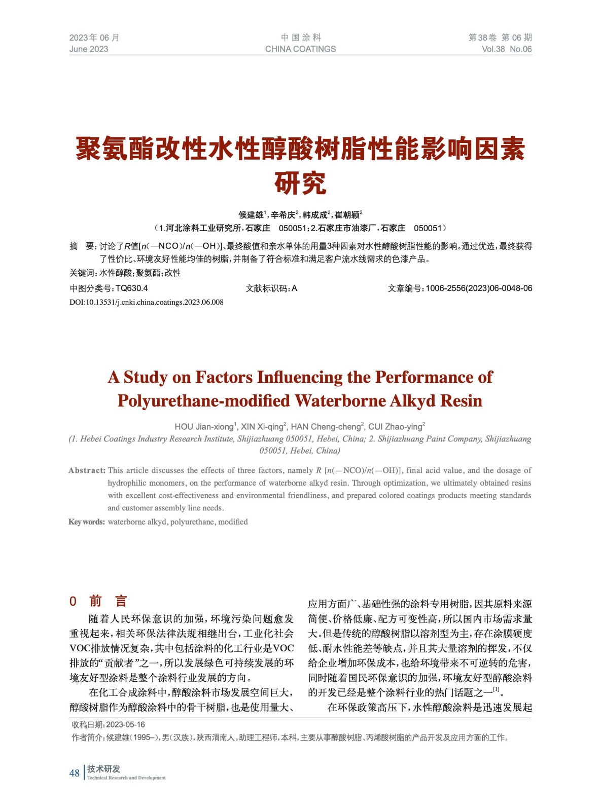 本文系作者@候建雄,辛希慶,韓成成,崔朝穎 授權中國涂料網發表,并經中國涂料網編輯,未經允許不得轉載,如需轉載請聯系chinacoatingnet@vip.163.com
