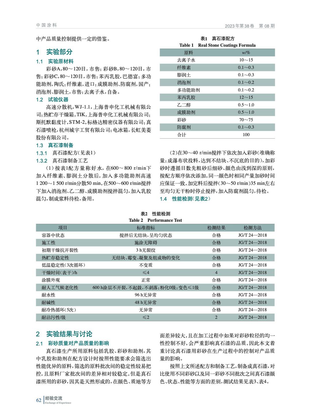 從彩砂質量、投料順序、攪拌時間和轉速3個方面入手分析探討生產過程控制對真石漆產品質量的影響,從而提升真石漆批次之間的穩定性。