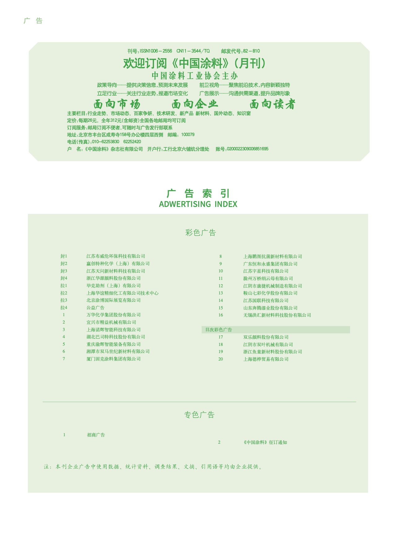 招商廣告、《中國涂料》征訂通知