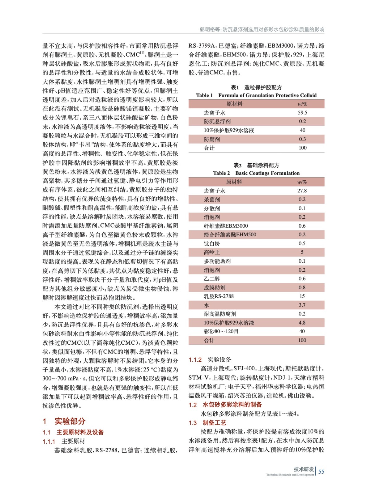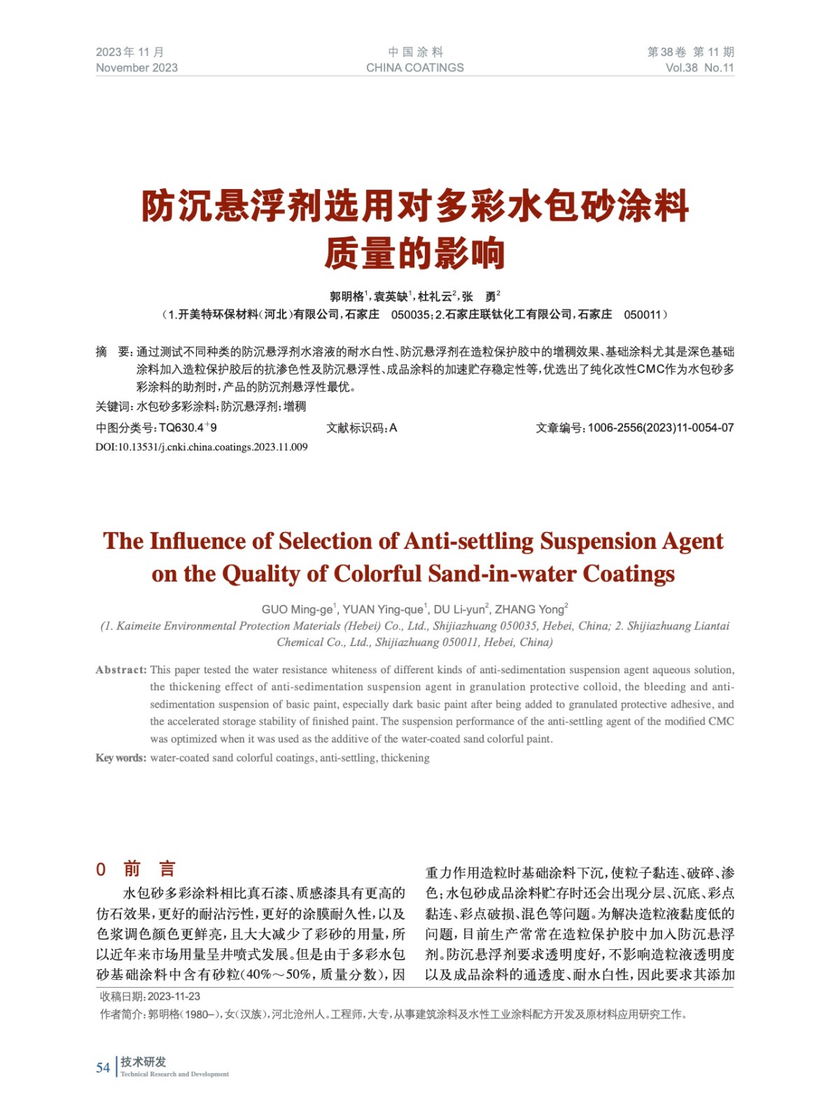 防沉懸浮劑選用對多彩水包砂涂料質量的影響