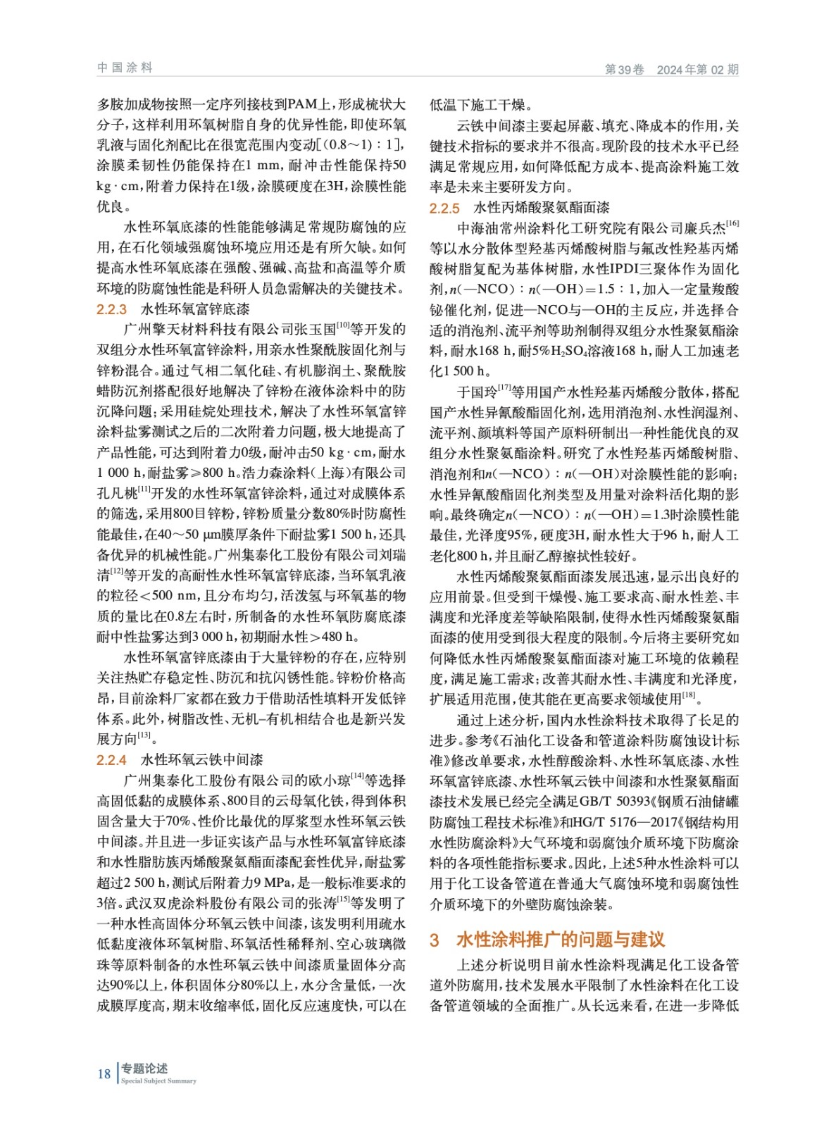 對不同環境下化工設備管道的腐蝕環境、外防腐用涂料的性能要求及水性化的可行性進行分析,對化工設備管道外防腐用水性涂料的技術發展現狀進行介紹,對水性涂料在化工設備管道外防腐領域的推廣應用存在的問題進行闡述,并對未來發展進行展望。