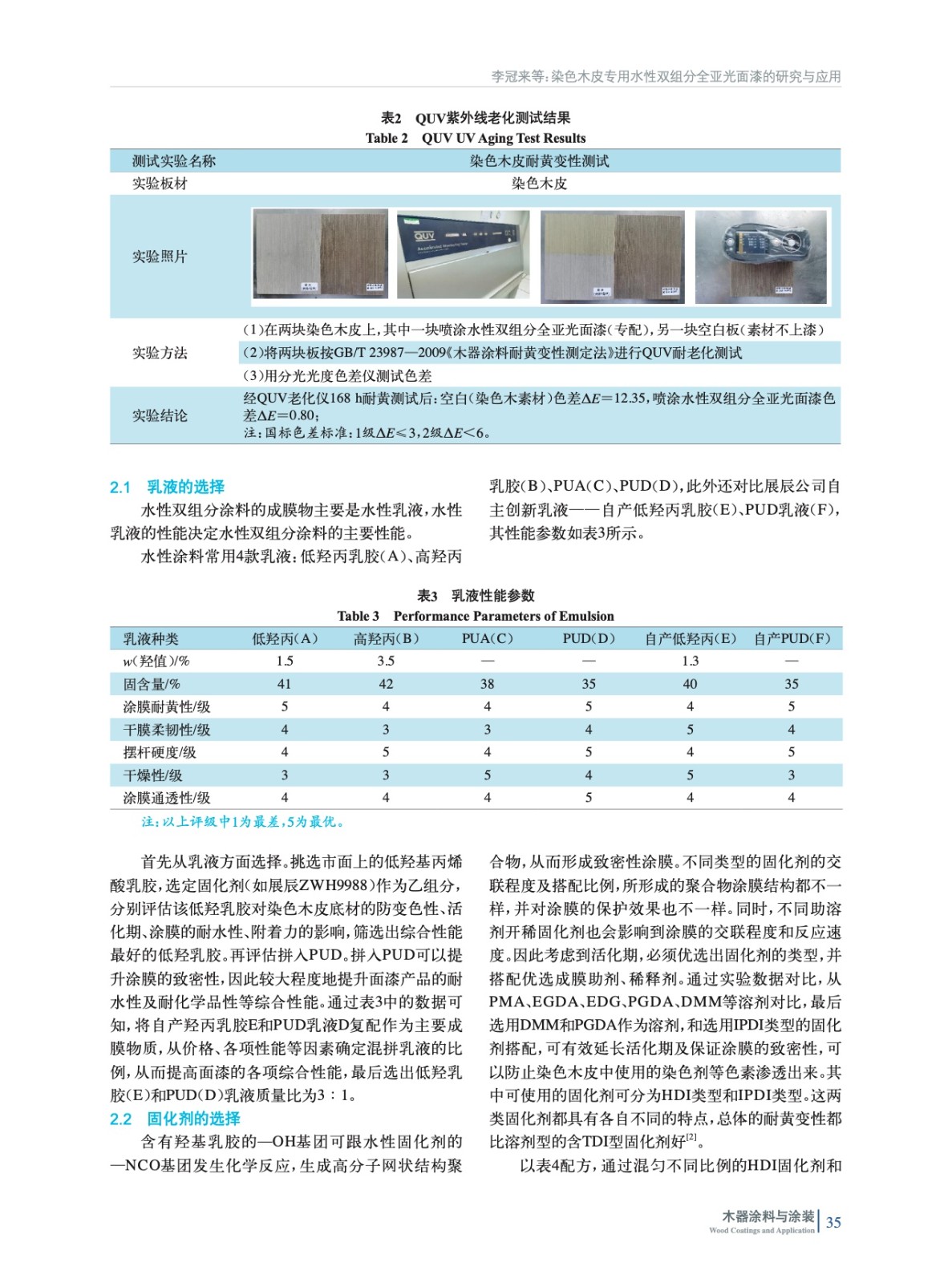 染色木皮專用水性雙組分全亞光面漆的研究與應(yīng)用