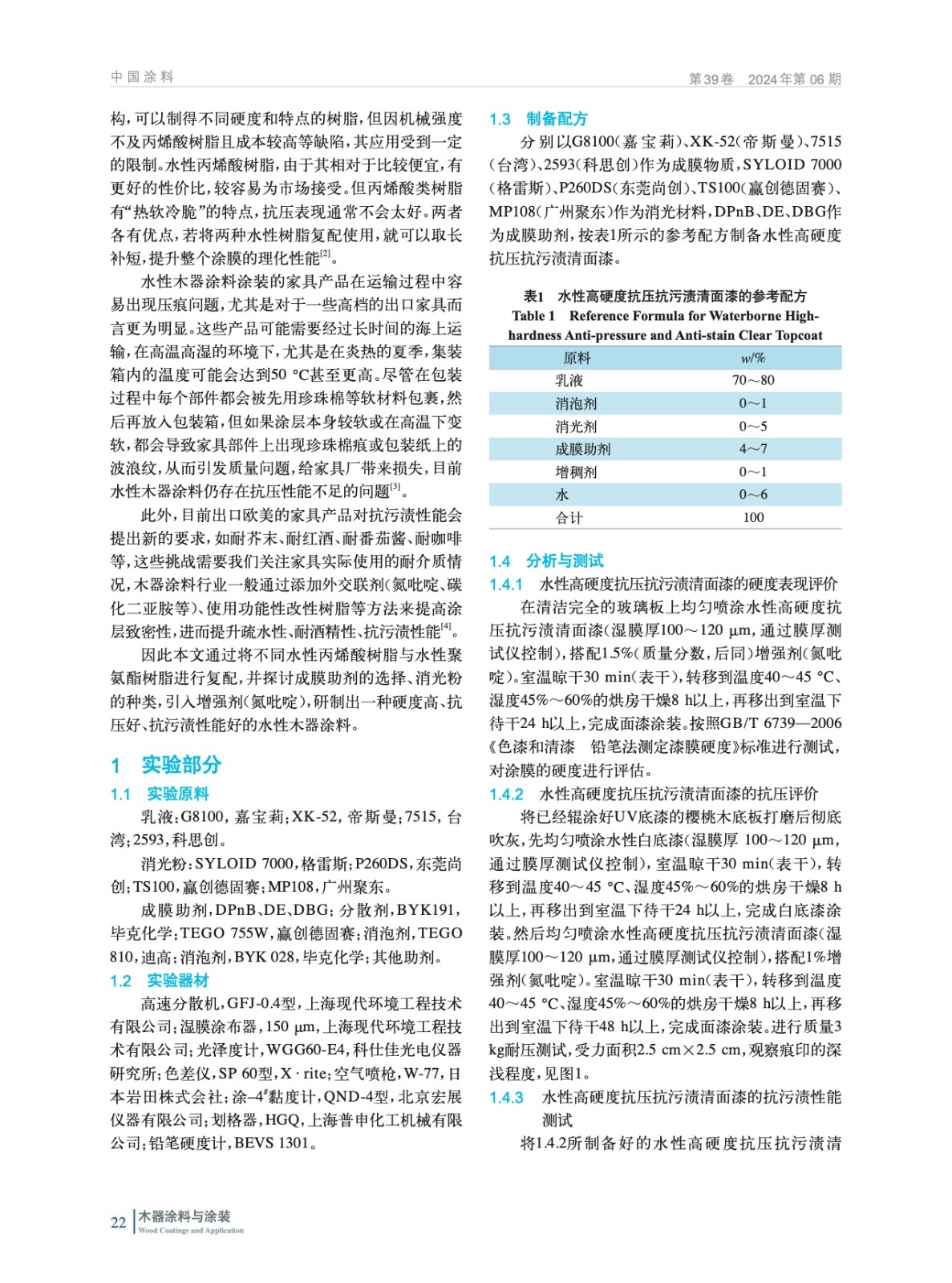 水性高硬度抗壓抗污漬清面漆的制備