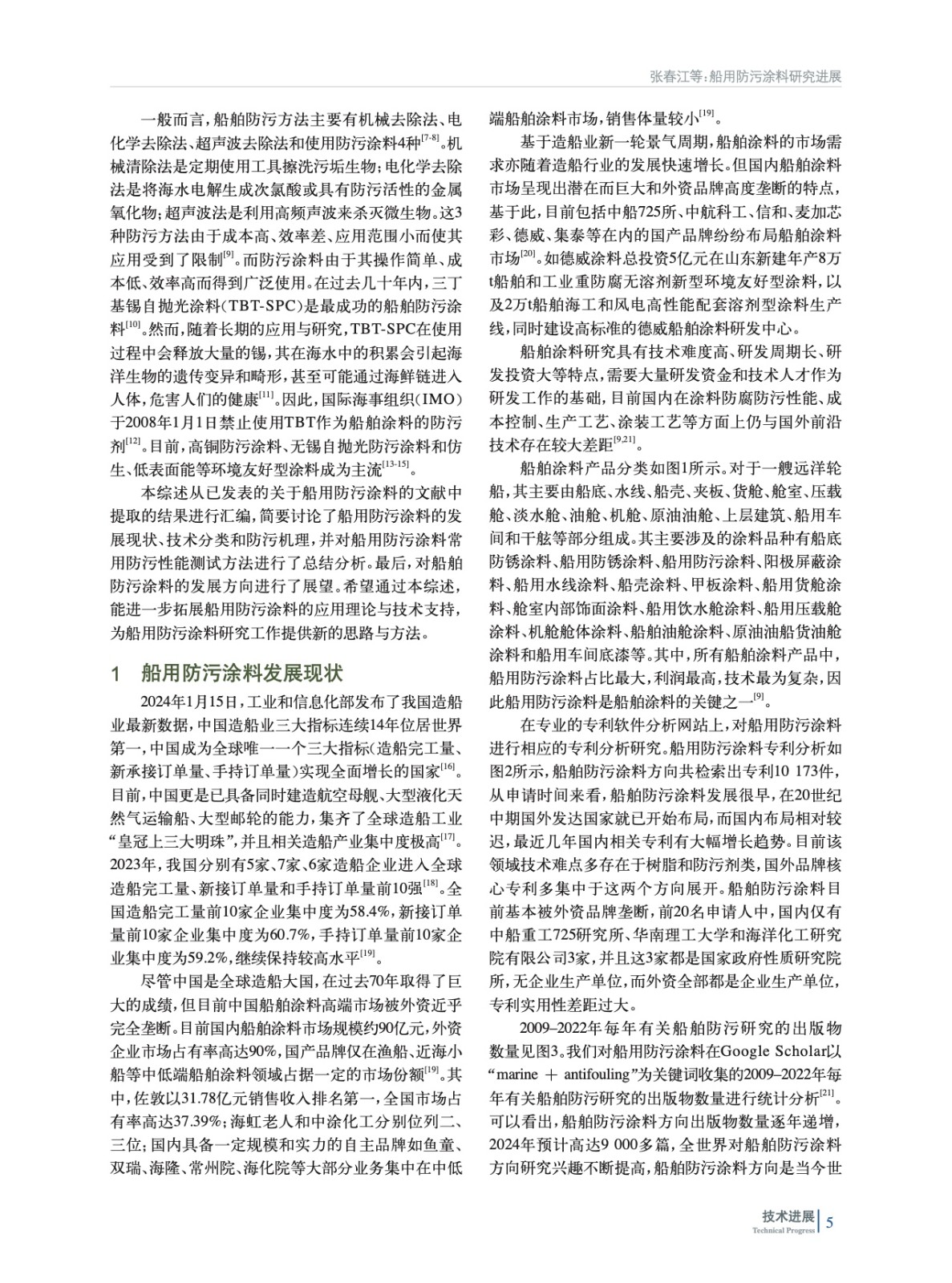 綜述了近年來船用防污涂料發展現狀,簡要討論了船用防污涂料技術分類與防污機理,并對船用防污涂料常用防污性能測試方法進行了總結分析。最后,對船用防污涂料的發展方向進行了展望。