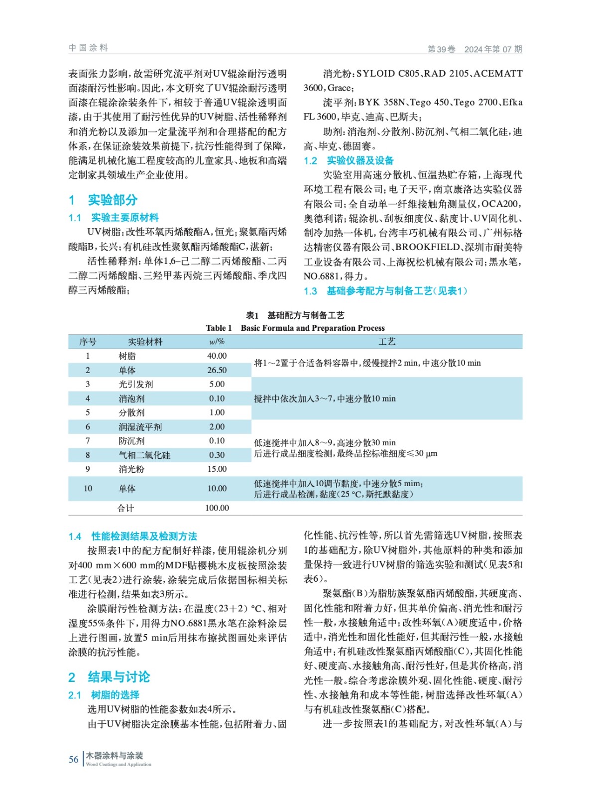 對UV輥涂耐污透明面漆,從UV樹脂、活性稀釋劑、消光粉和流平劑選擇等方面進行探討,通過實驗論證以及輥涂設備應用測試,驗證了其在工業化應用上的可行性。