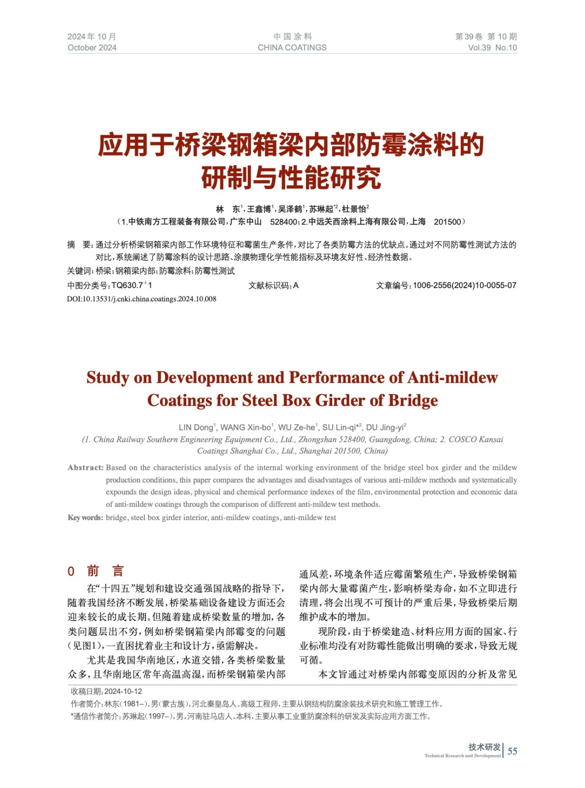 應用于橋梁鋼箱梁內部防霉涂料的研制與性能研究