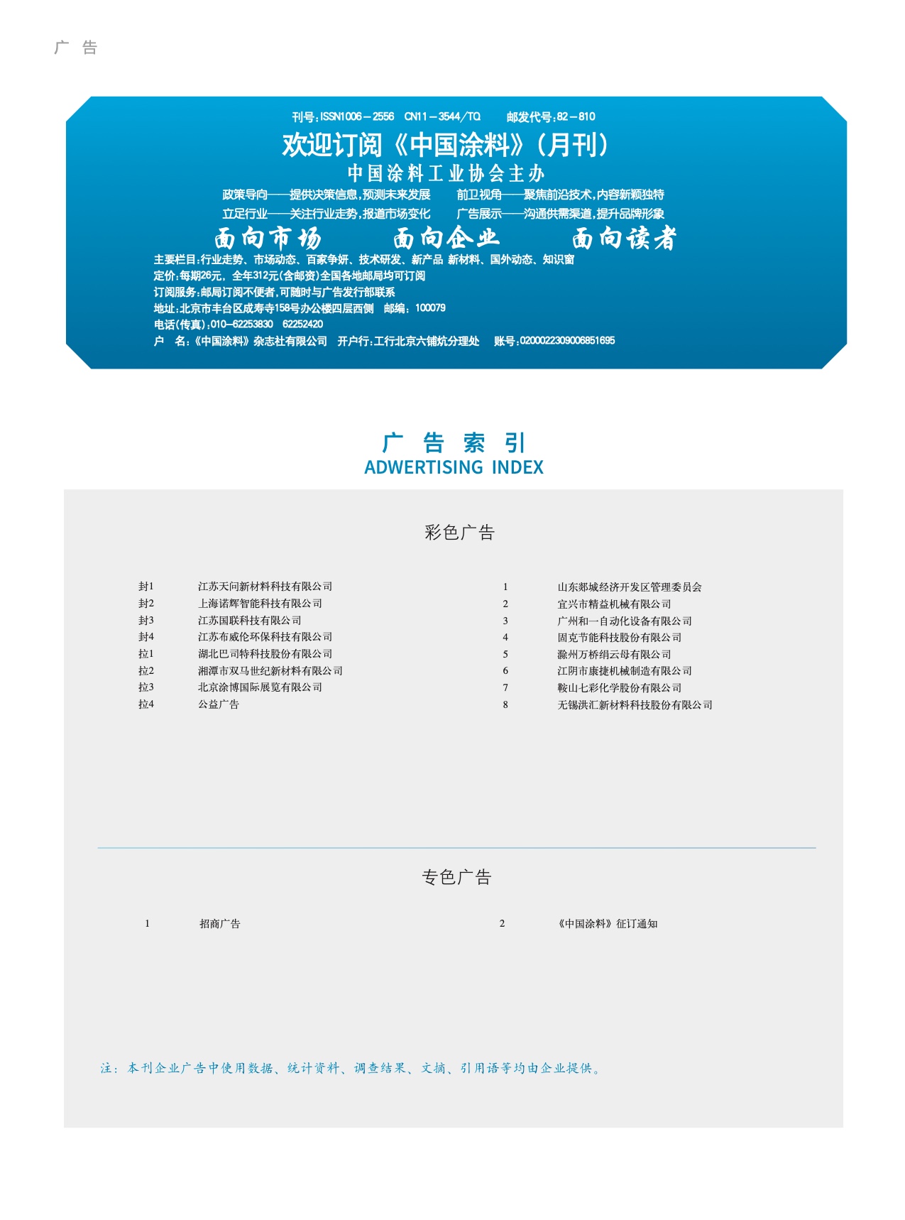 招商廣告、《中國涂料》征訂通知