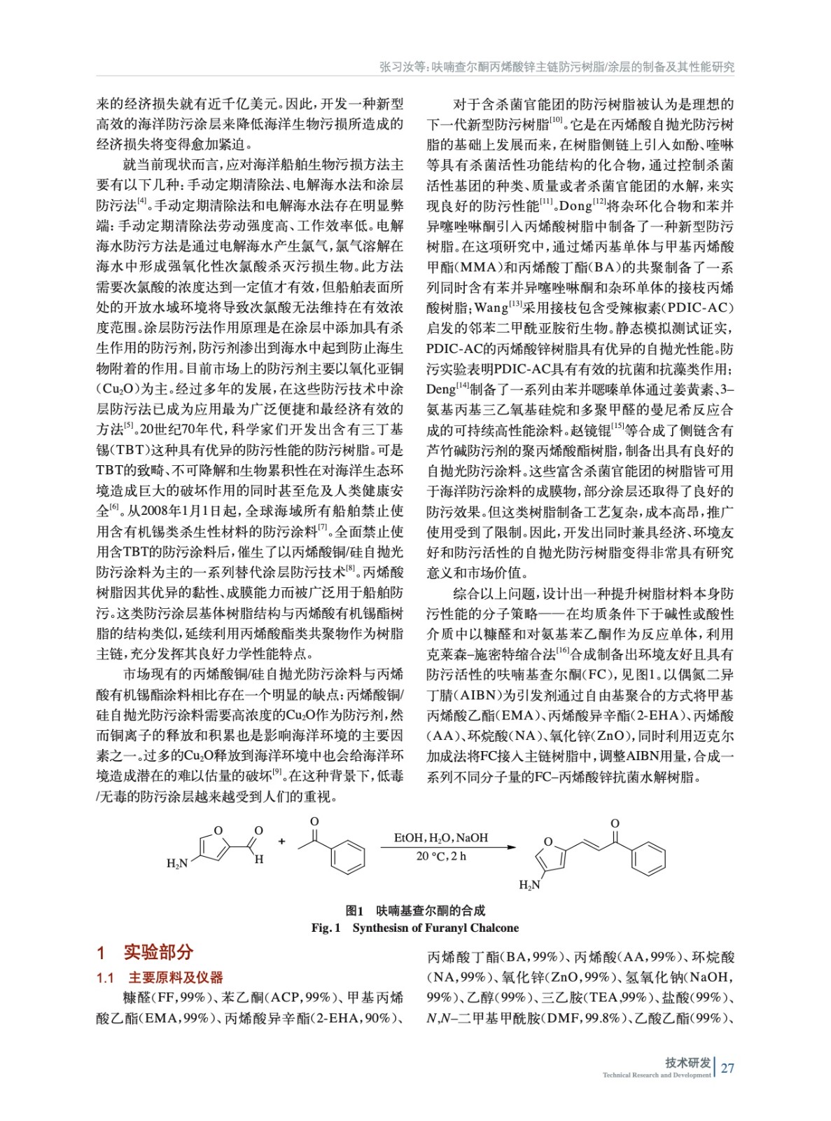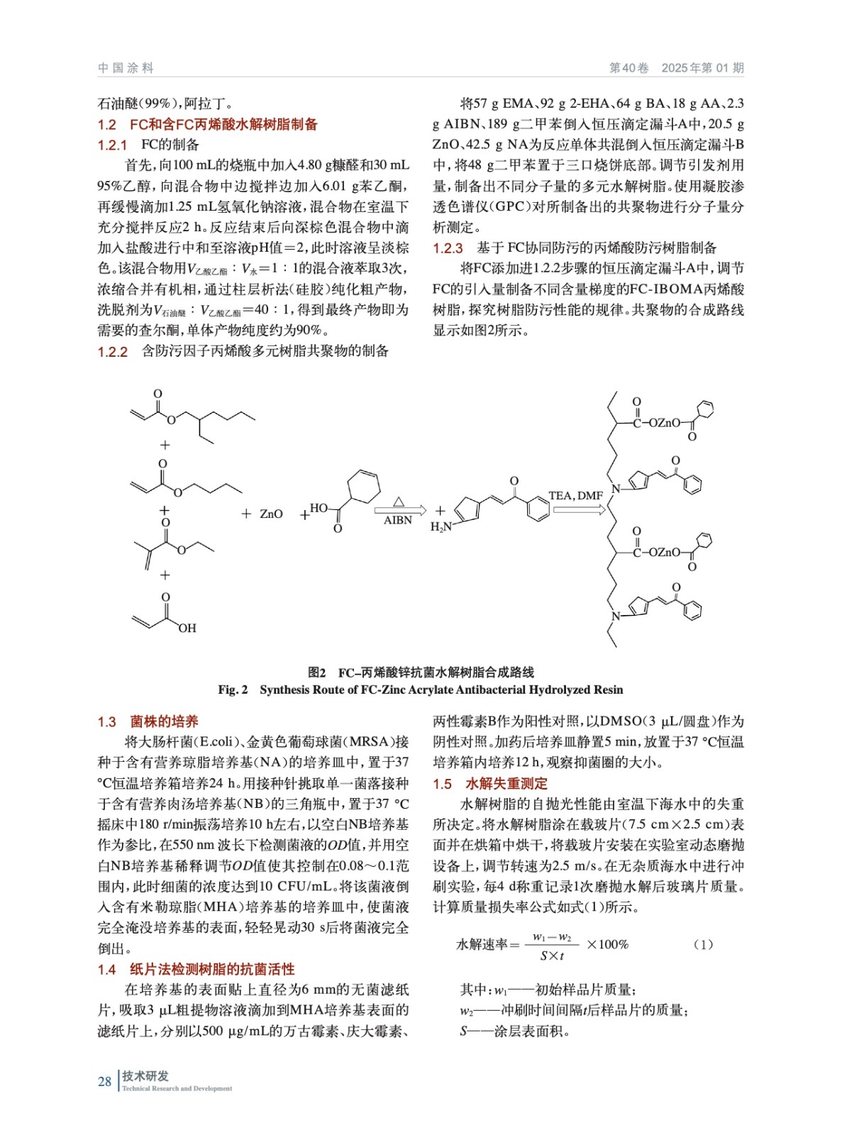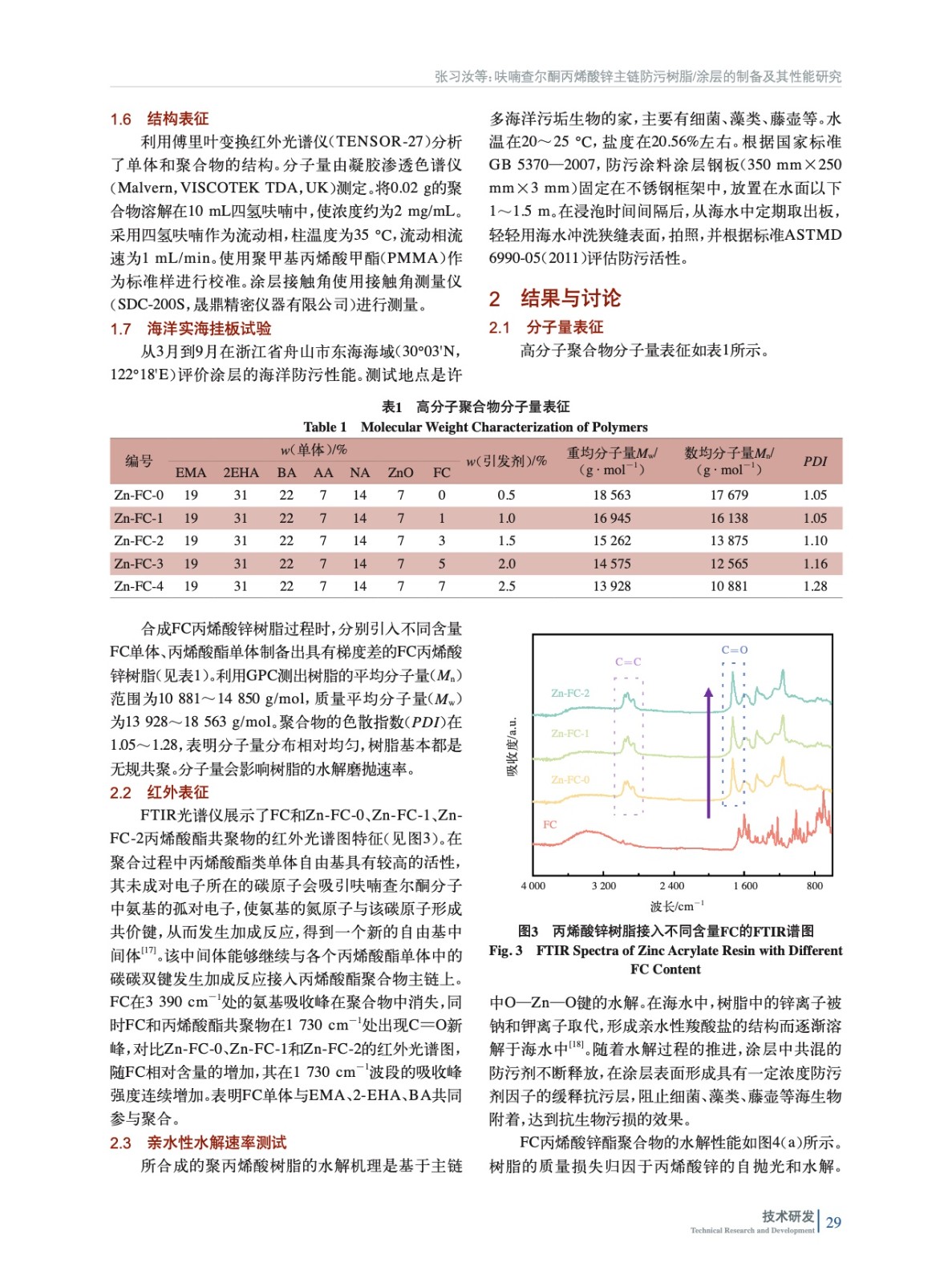 呋喃查爾酮丙烯酸鋅主鏈防污樹脂/涂層的制備及其性能研究