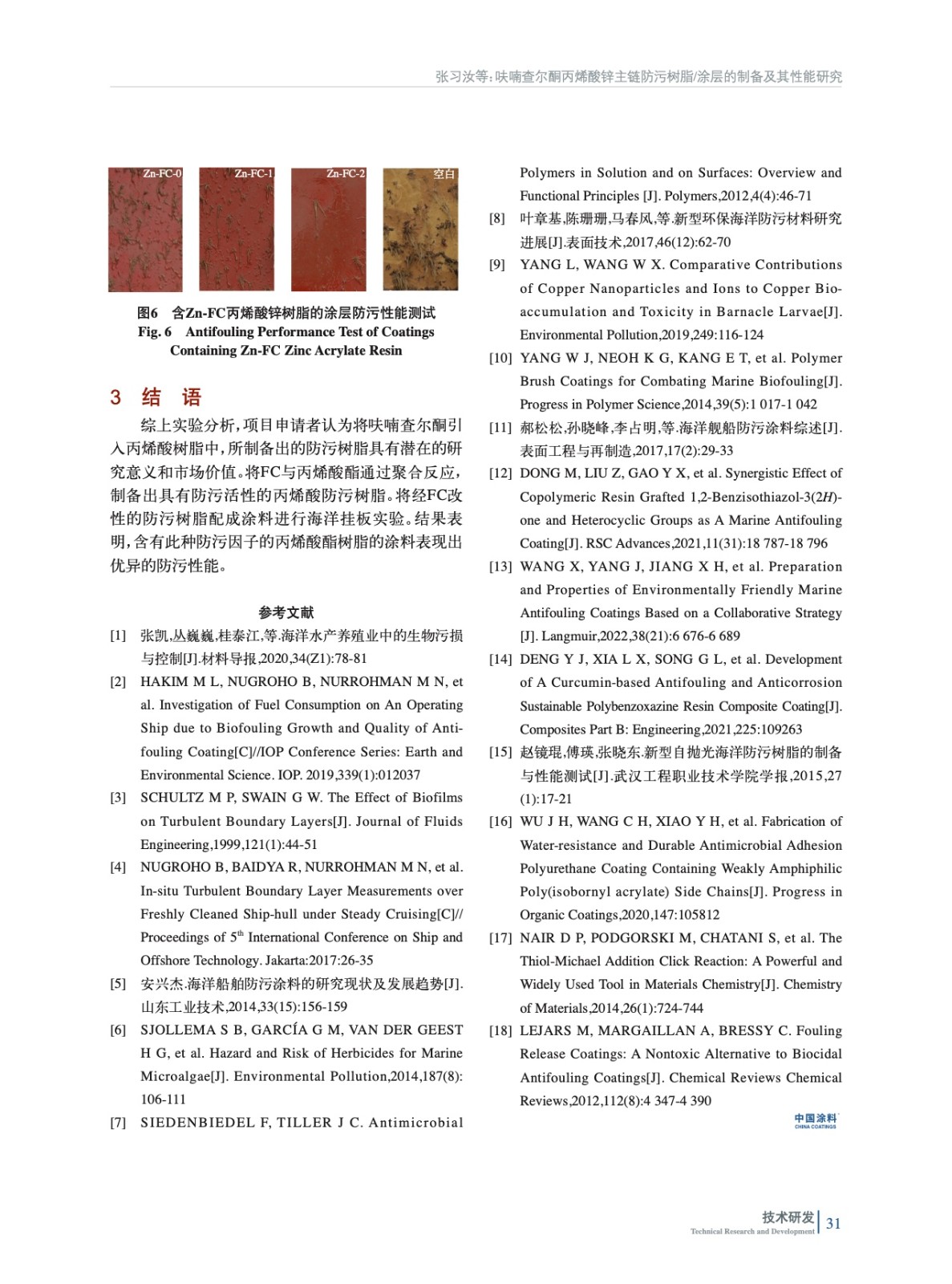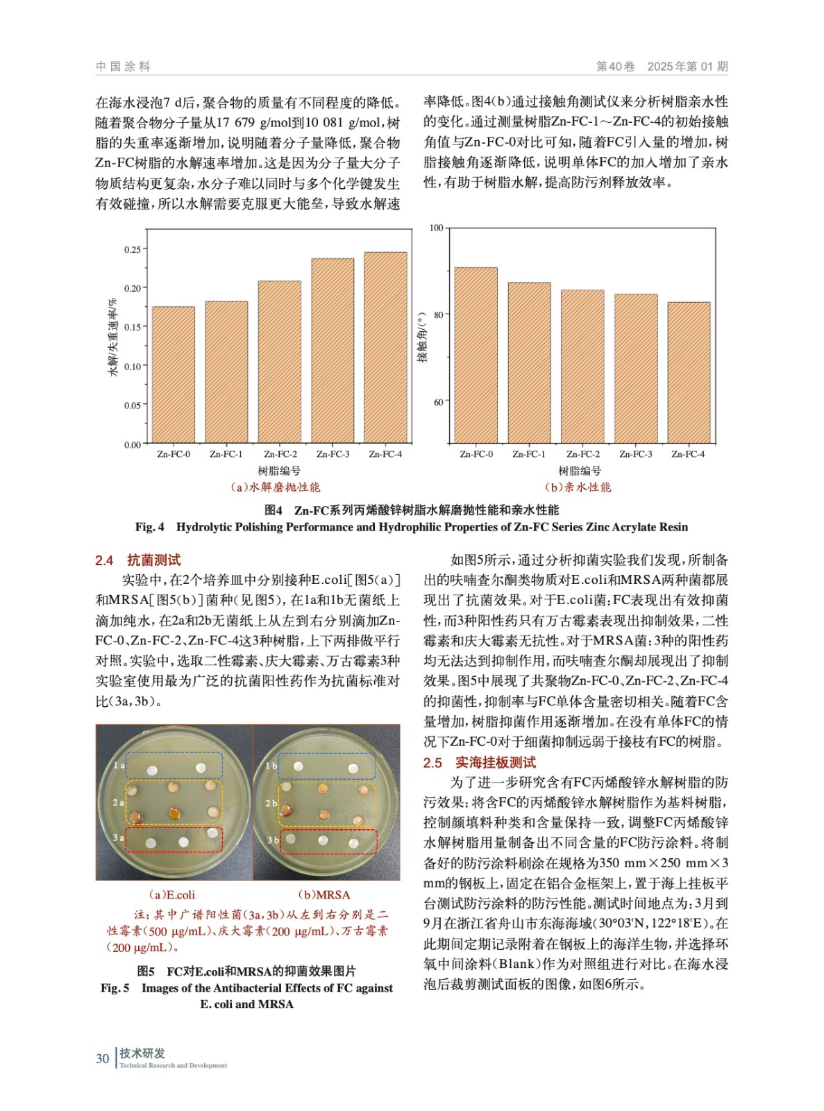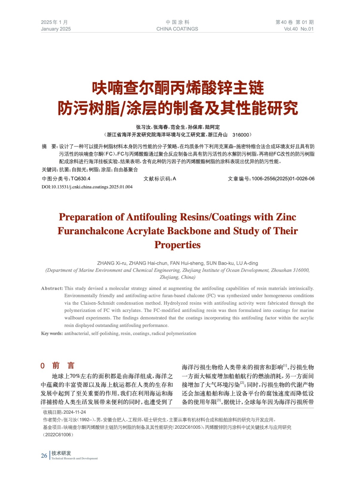呋喃查爾酮丙烯酸鋅主鏈防污樹脂/涂層的制備及其性能研究