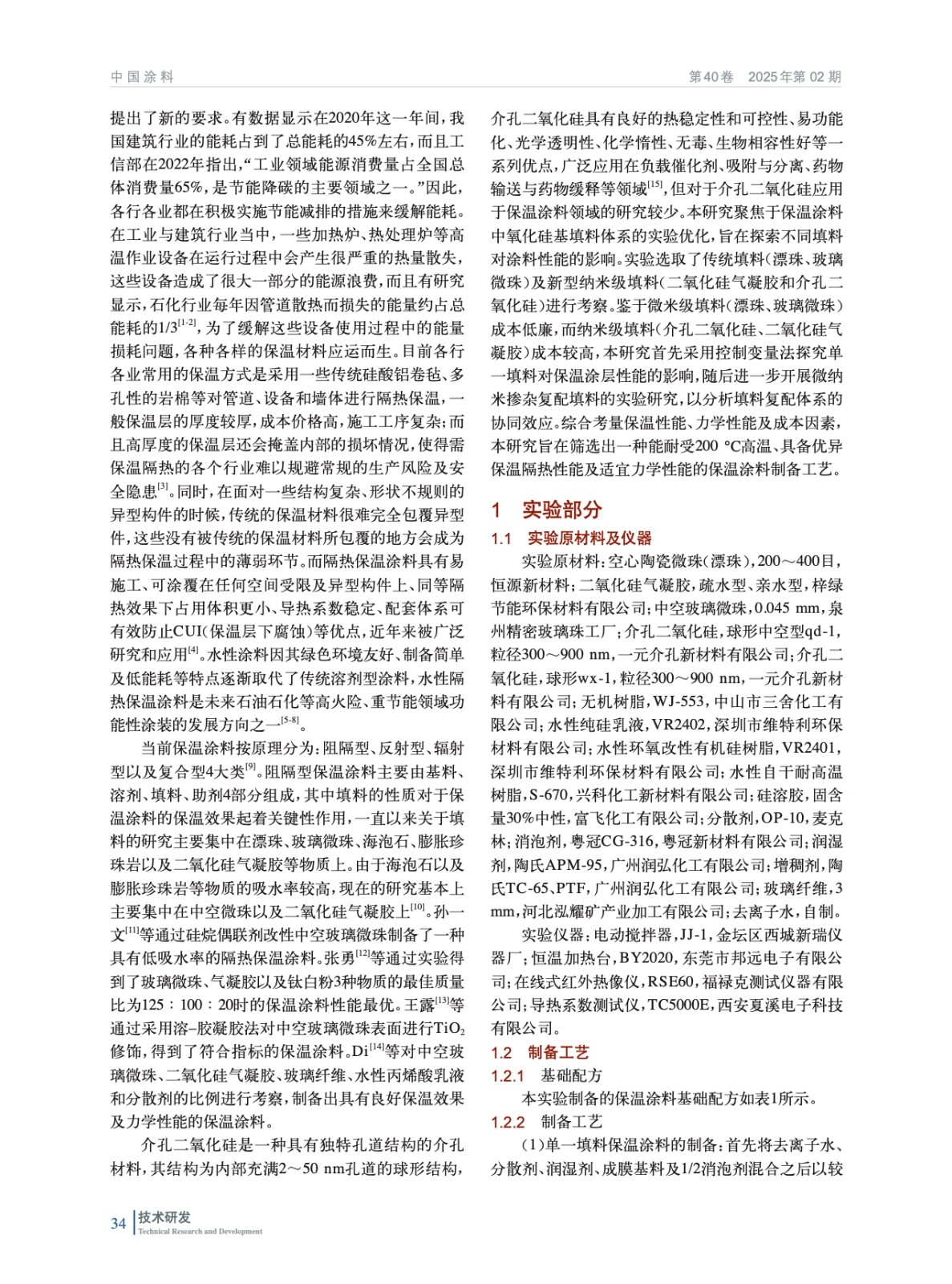 摘要:針對(duì)工業(yè)節(jié)能領(lǐng)域?qū)Ω邷乇夭牧系钠惹行枨螅槍?duì)傳統(tǒng)涂層在200 ℃溫區(qū)存在的厚度過大、施工工藝復(fù)雜及功能單一等問題,系統(tǒng)開展保溫涂層的研發(fā)。選取無機(jī)體系樹脂作為成膜物質(zhì),采用以SiO2為主要成分的漂珠、玻璃微珠、氣凝膠和介孔二氧化硅為填料,通過中空或多孔結(jié)構(gòu)降低熱傳導(dǎo),且適配多種基體的分散性,實(shí)現(xiàn)高效隔熱與工藝兼容性。實(shí)驗(yàn)考察了不同樹脂、填料、顏基比及復(fù)配比例對(duì)保溫涂料隔熱溫差、導(dǎo)熱系數(shù)、硬度和附著力的影響。結(jié)果發(fā)現(xiàn),以無機(jī)體系樹脂WJ-553為成膜樹脂,顏基比1.5∶1,中空玻璃微珠與球形介孔二氧化硅填料總質(zhì)量分?jǐn)?shù)為30%,球形介孔二氧化硅摻雜量為4%時(shí),保溫涂料導(dǎo)熱系數(shù)可達(dá)0.086 W/(m·K),硬度6B,附著力等級(jí)為1級(jí),耐溫性能突破200 ℃閾值。該研究成果為開發(fā)兼具高效隔熱、機(jī)械可靠及施工便利的新型工業(yè)保溫涂層提供了理論依據(jù)和技術(shù)方案,在高溫管道、工業(yè)窯爐等節(jié)能領(lǐng)域展現(xiàn)出重要應(yīng)用價(jià)值。