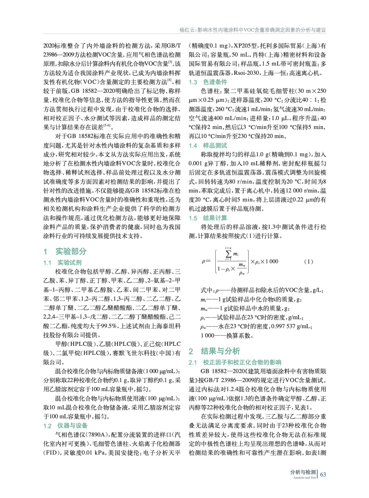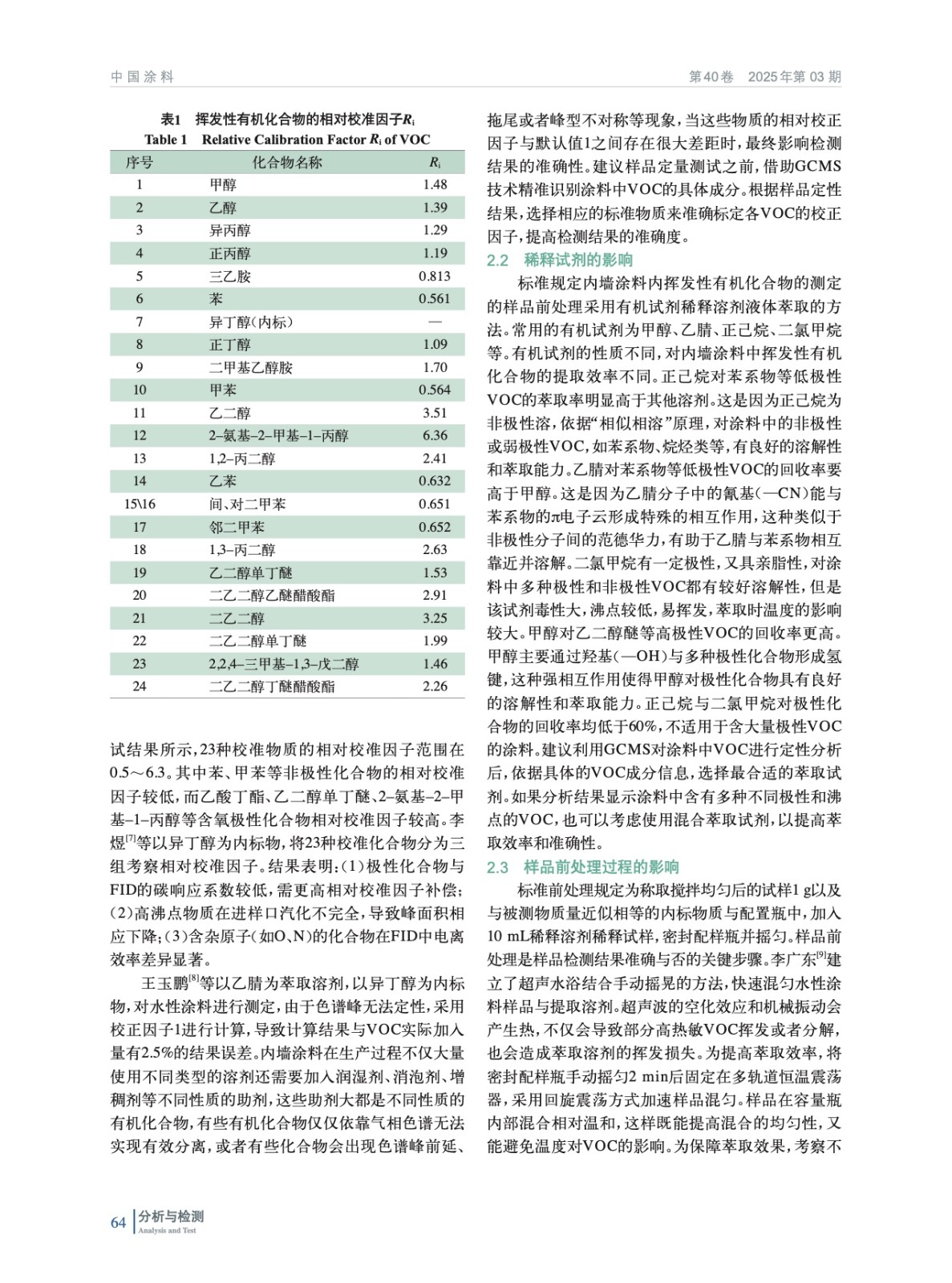影響水性內墻涂料中VOC含量準確測定因素的分析與建議