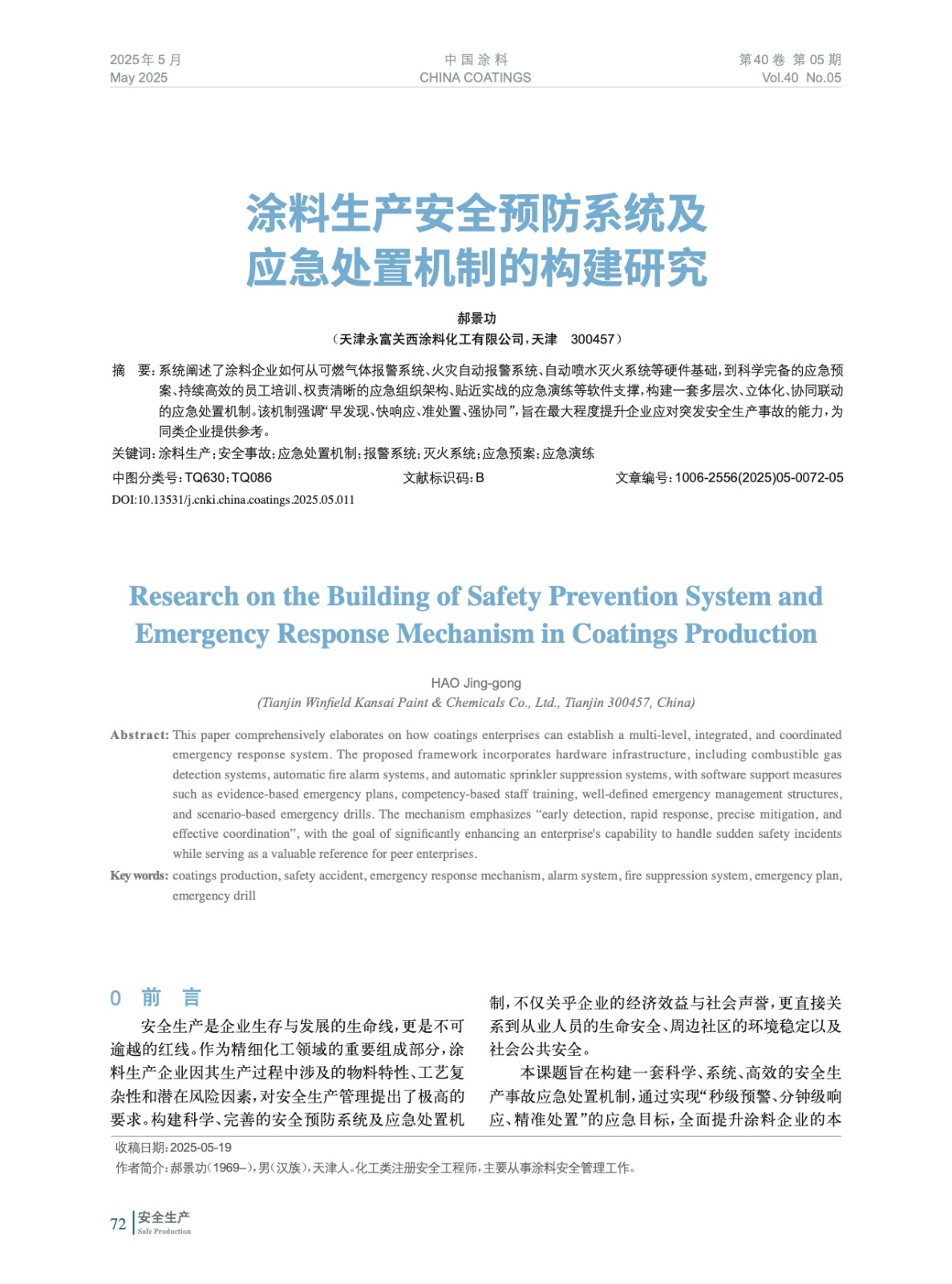 涂料生產(chǎn)安全預(yù)防系統(tǒng)及應(yīng)急處置機(jī)制的構(gòu)建研究