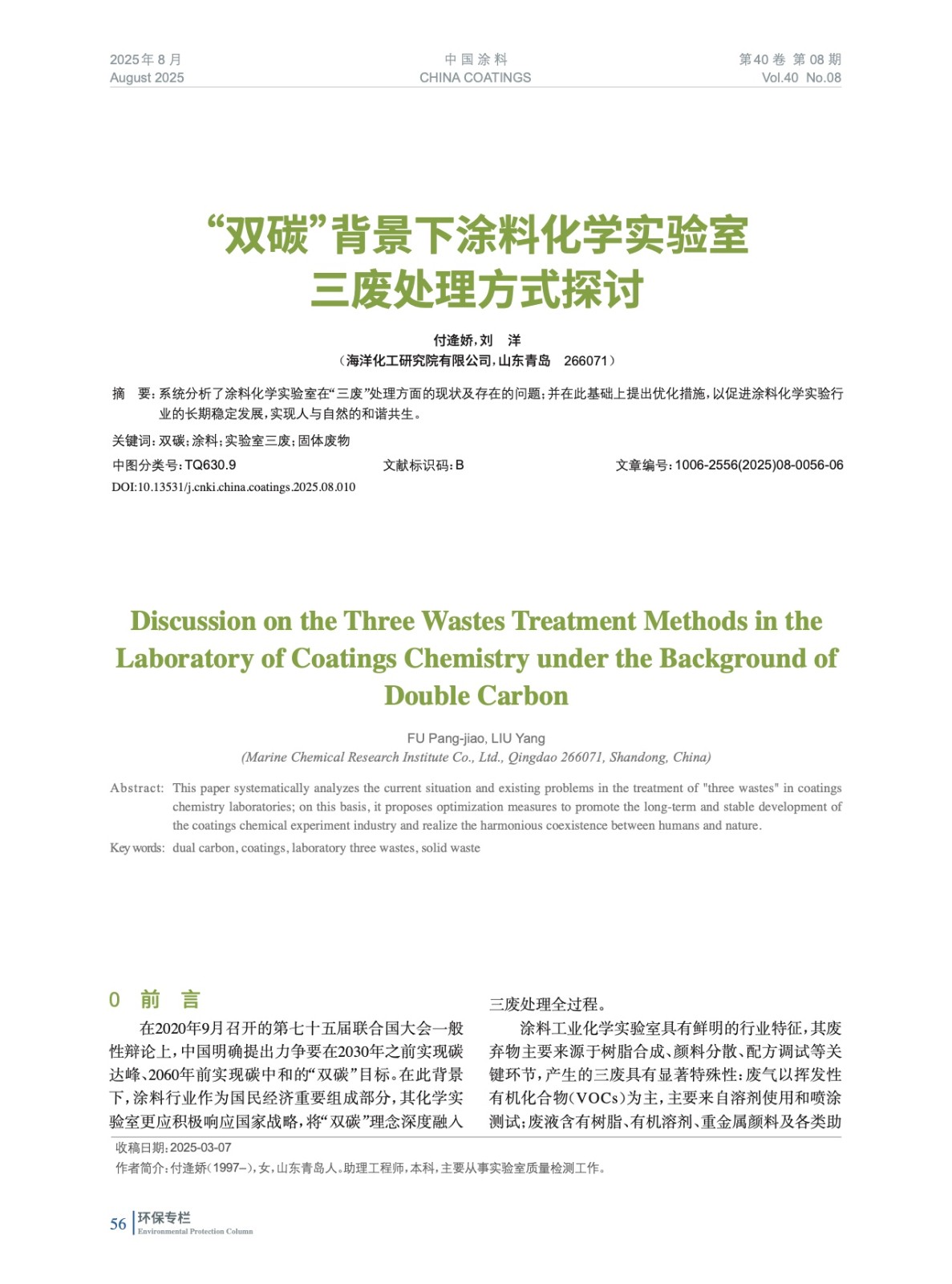 “雙碳”背景下涂料化學(xué)實驗室三廢處理方式探討