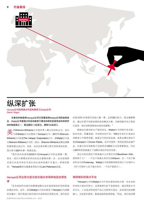Hempel公司收購澳大利亞和新西蘭Wattyl公司
