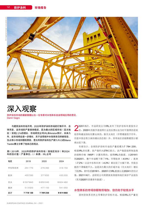 防護涂料市場的最新數據以及一位專家對水性體系在該領域應用的意見
