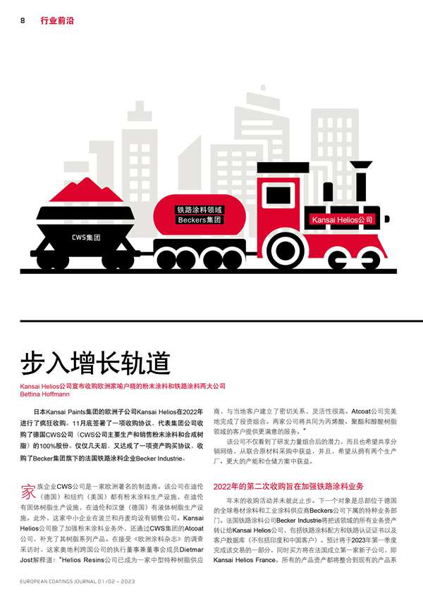 Kansai Helios將收購歐洲家喻戶曉的粉末涂料和鐵路涂料兩大公司