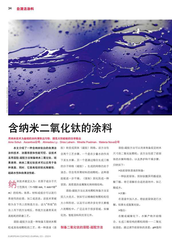 用納米技術(shù)為基礎(chǔ)的涂料清除沾污物,提高太陽(yáng)能板的功率輸出