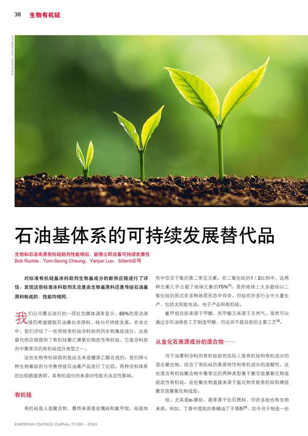 生物和石油來源有機(jī)硅助劑性能相似,能夠立即改善可持續(xù)發(fā)展性
