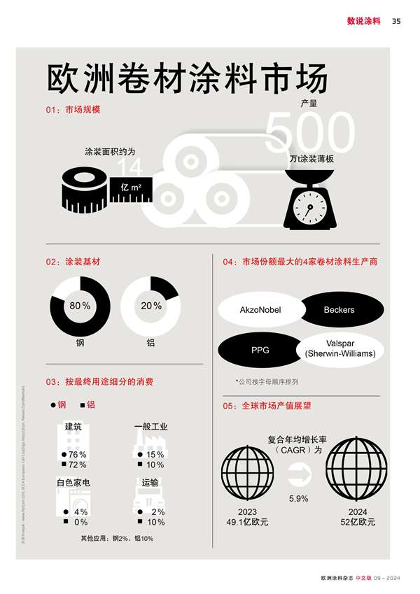 市場規模:涂裝面積約為14億m2,產量500萬t涂裝薄板。